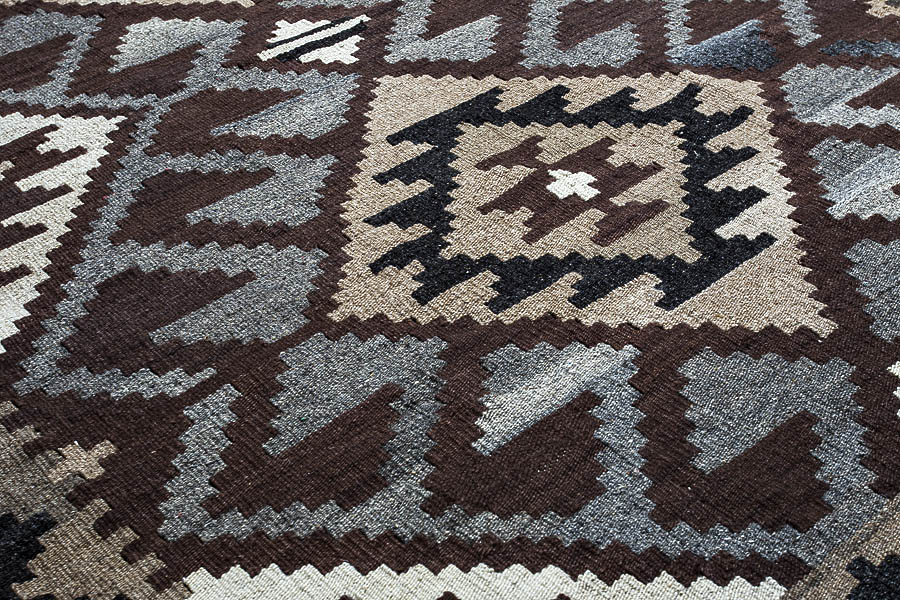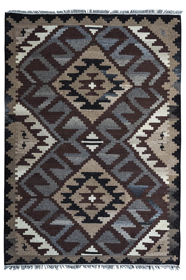 Узор ковров из коллекции Килим создаётся взаимодействием нитей утока и нитей основы, благодаря чему получается геометрический узор.