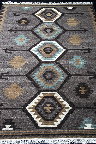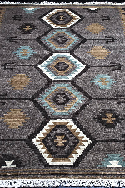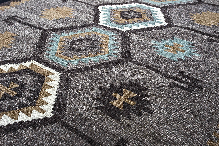 Узор ковров из коллекции Килим создаётся взаимодействием нитей утока и нитей основы, благодаря чему получается геометрический узор.
