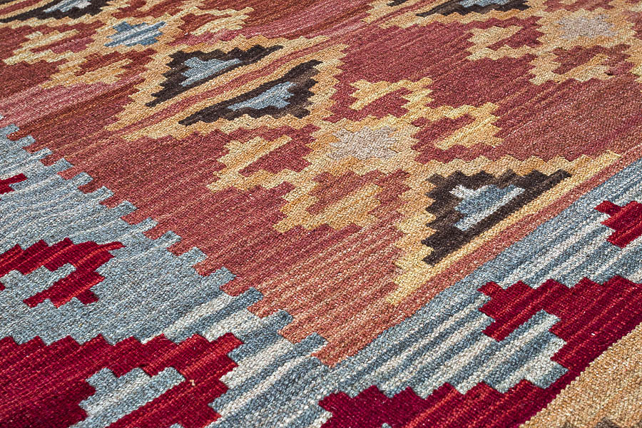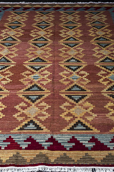 Узор ковров из коллекции Килим создаётся взаимодействием нитей утока и нитей основы, благодаря чему получается геометрический узор.