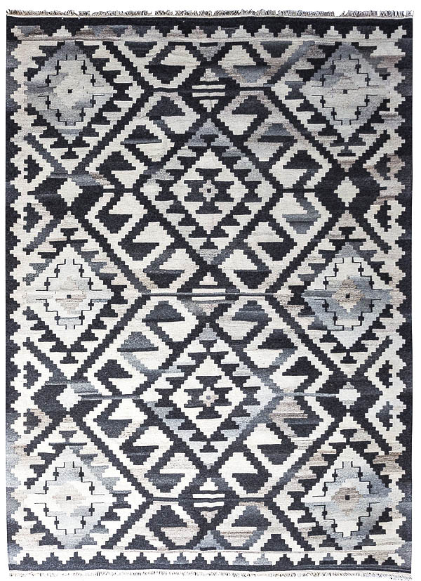 Узор ковров из коллекции Килим создаётся взаимодействием нитей утока и нитей основы, благодаря чему получается геометрический узор.