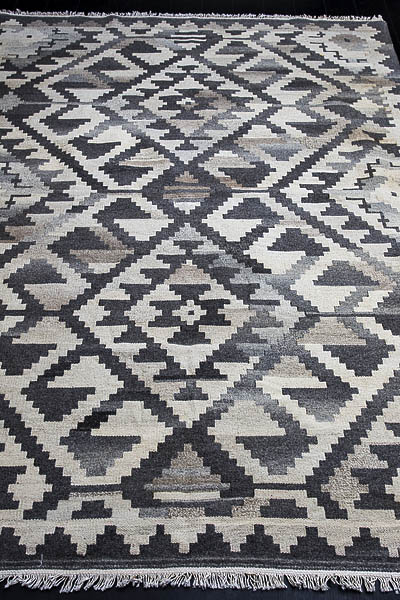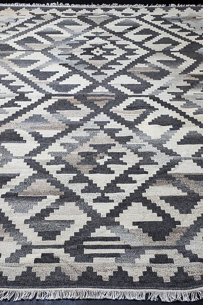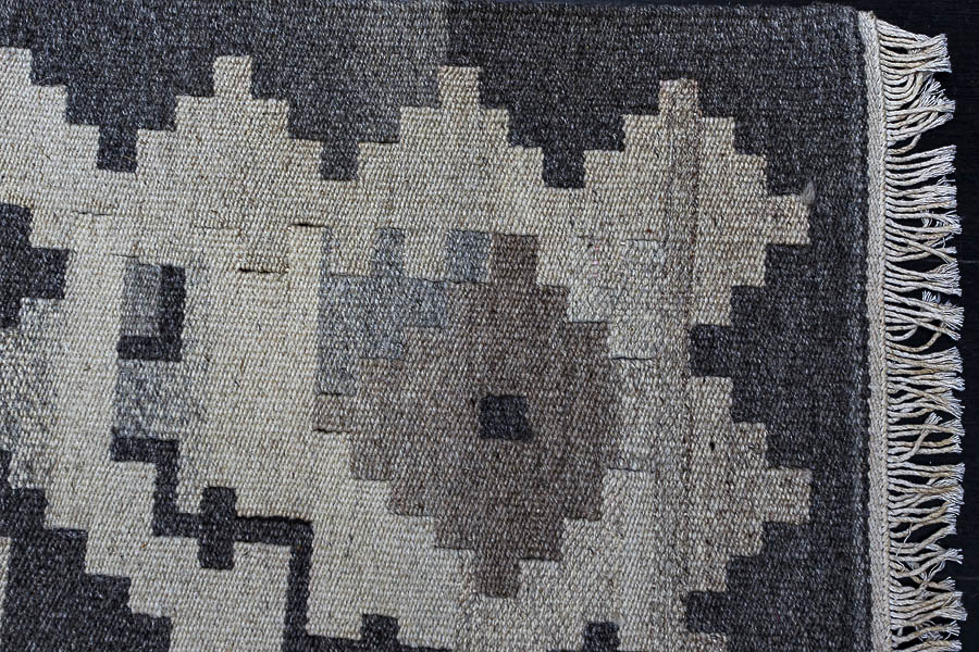 Узор ковров из коллекции Килим создаётся взаимодействием нитей утока и нитей основы, благодаря чему получается геометрический узор.