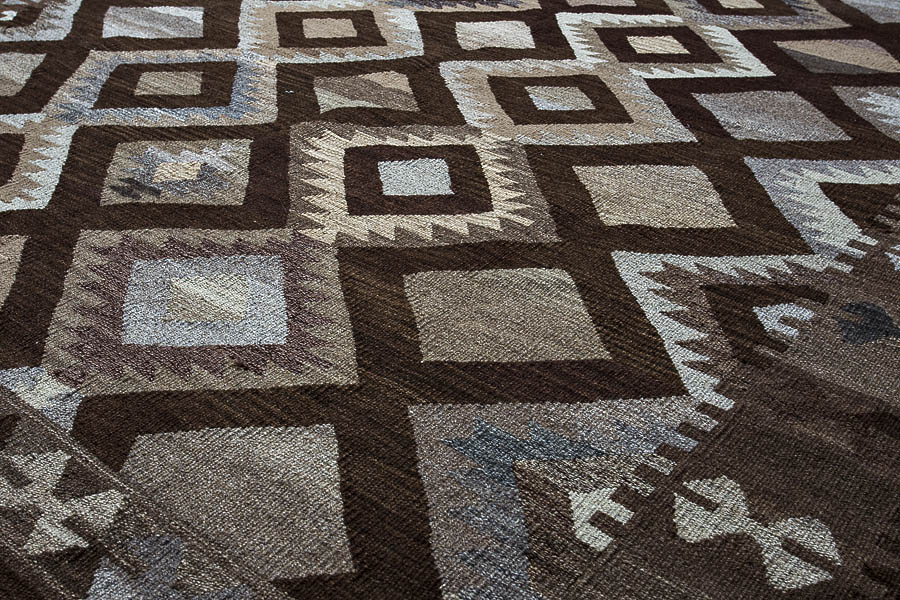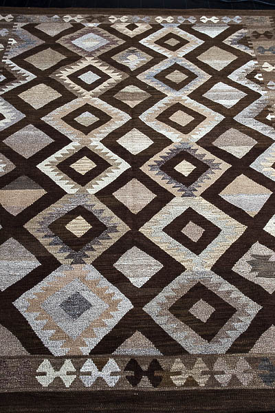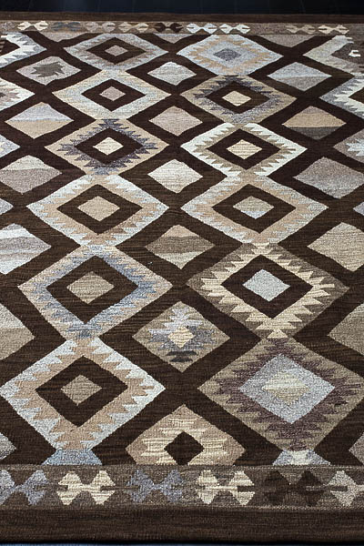 Узор ковров из коллекции Килим создаётся взаимодействием нитей утока и нитей основы, благодаря чему получается геометрический узор.