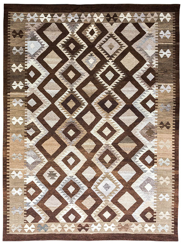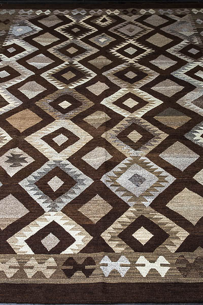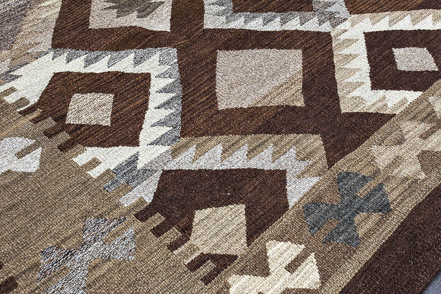 Узор ковров из коллекции Килим создаётся взаимодействием нитей утока и нитей основы, благодаря чему получается геометрический узор.