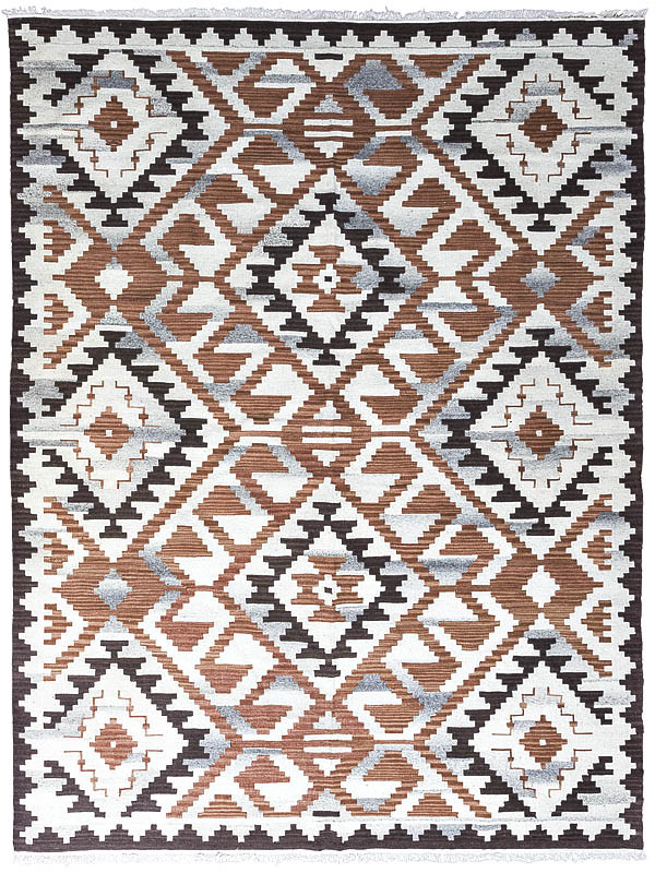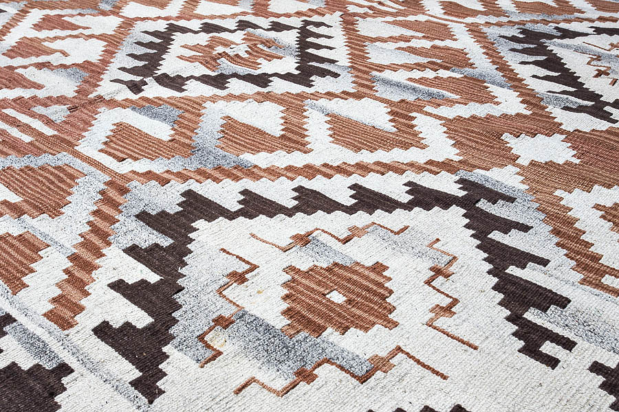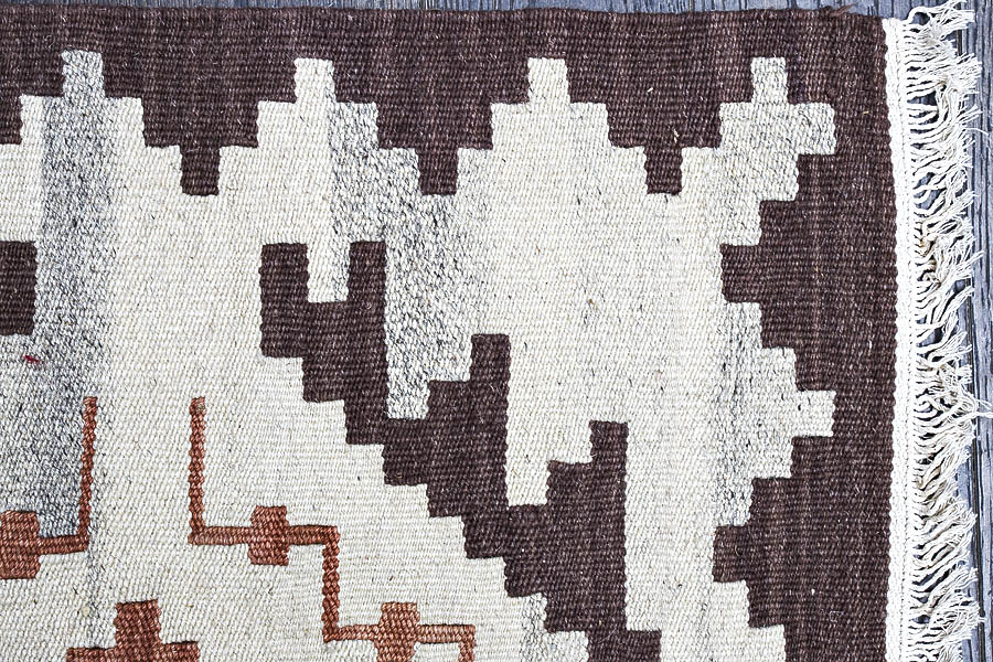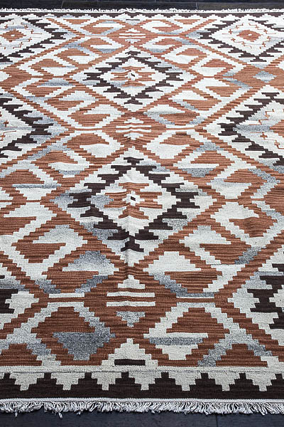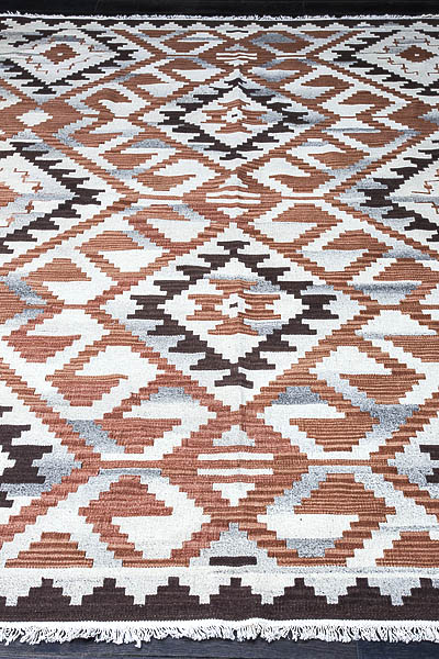 Узор ковров из коллекции Килим создаётся взаимодействием нитей утока и нитей основы, благодаря чему получается геометрический узор.