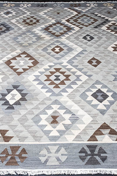 Узор ковров из коллекции Килим создаётся взаимодействием нитей утока и нитей основы, благодаря чему получается геометрический узор.