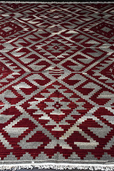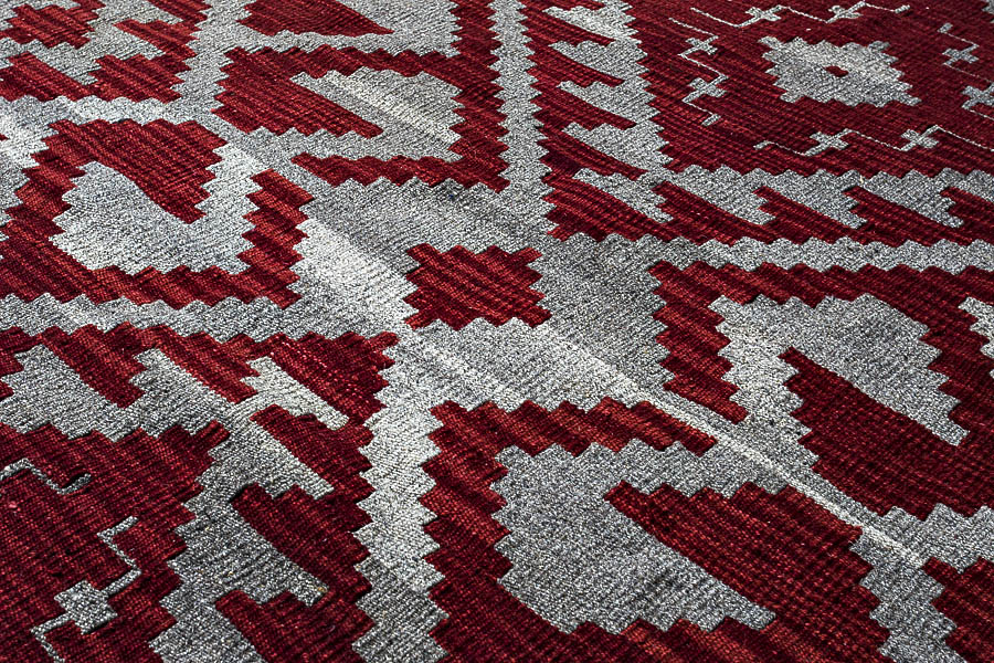 Узор ковров из коллекции Килим создаётся взаимодействием нитей утока и нитей основы, благодаря чему получается геометрический узор.