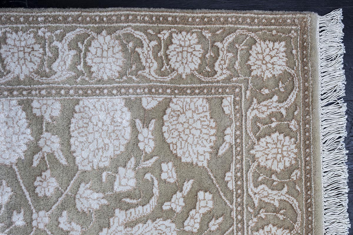 Каждый ковер в этой коллекции соткан вручную из шерсти и арт шёлка опытными индийскими мастерами.