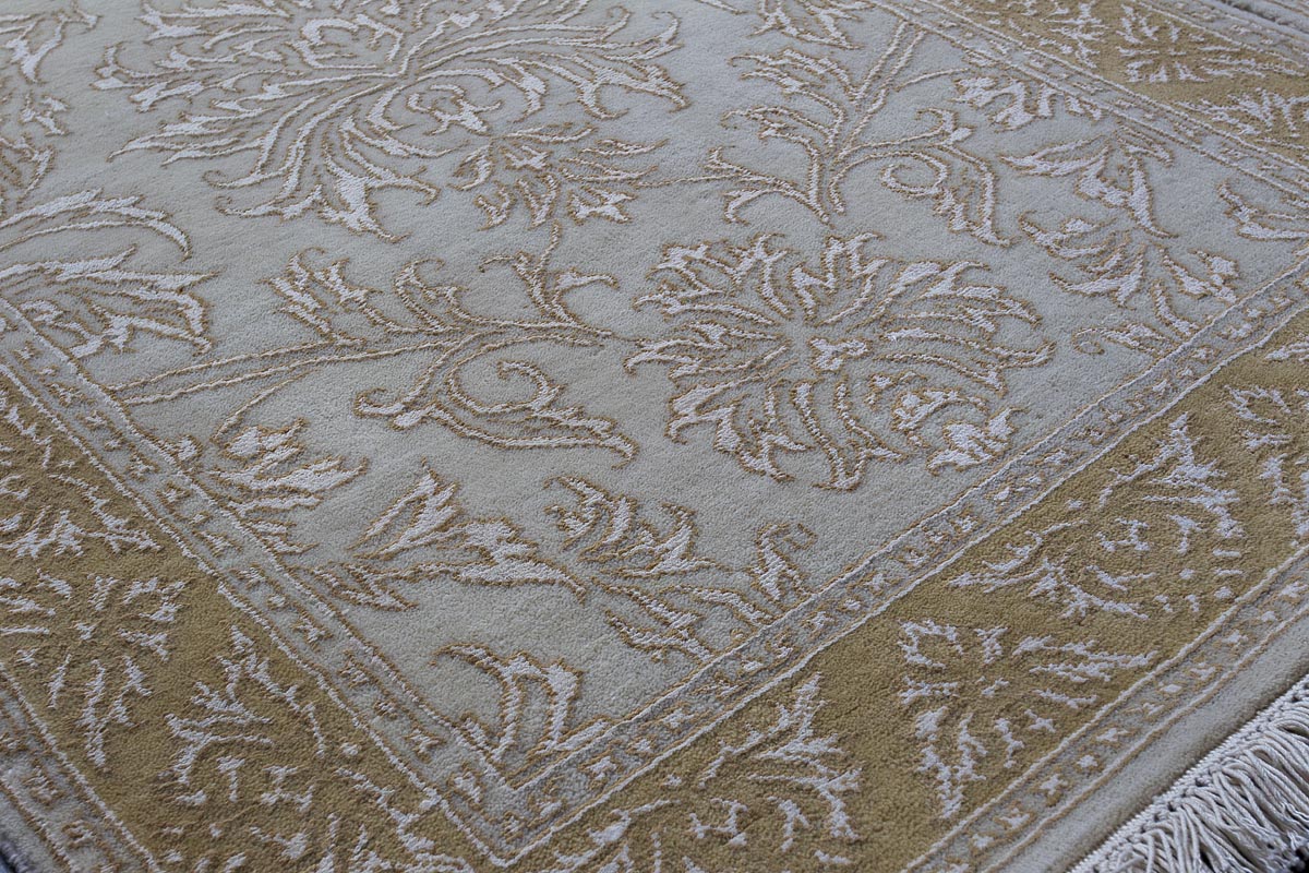 Каждый ковер в этой коллекции соткан вручную из шерсти и арт шёлка опытными индийскими мастерами.