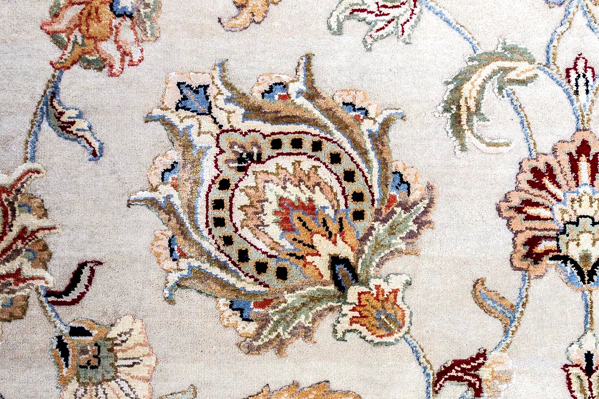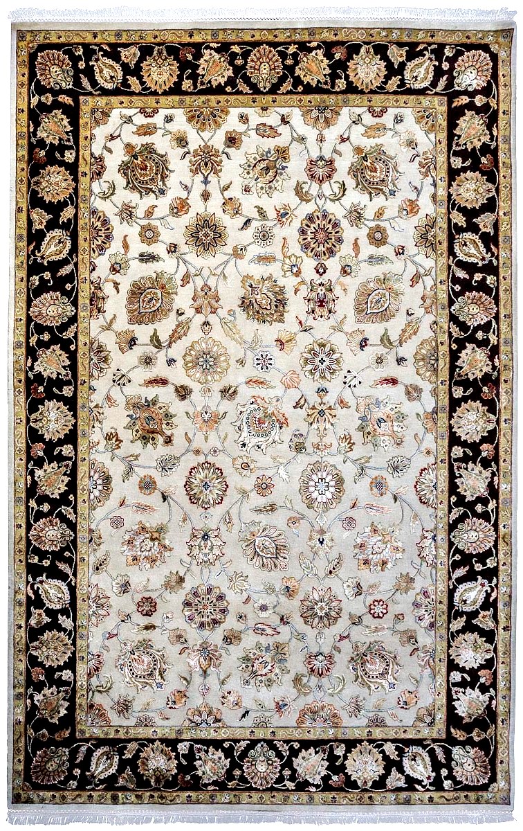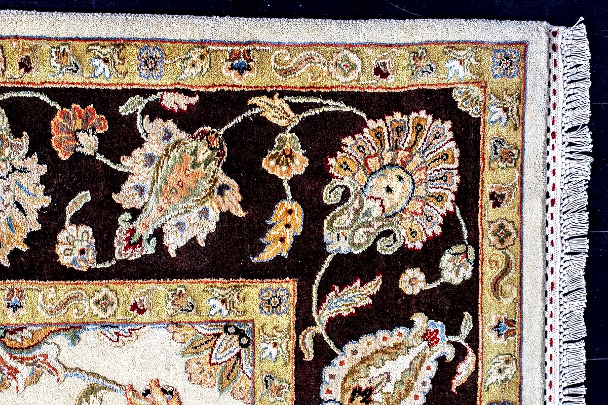 Более пяти веков назад в городе Агра зародилась знаменитая индийская школа ковроткачества, прославившаяся не меньше, чем расположенный здесь же Тадж-Махал. Мощное персидское влияние, помноженное на местный колорит, привело к появлению оригинальных орнаментов с богатыми растительными узорами — причудливым цветам, ветвям и листьям, разбросанным по всему полю ковра.