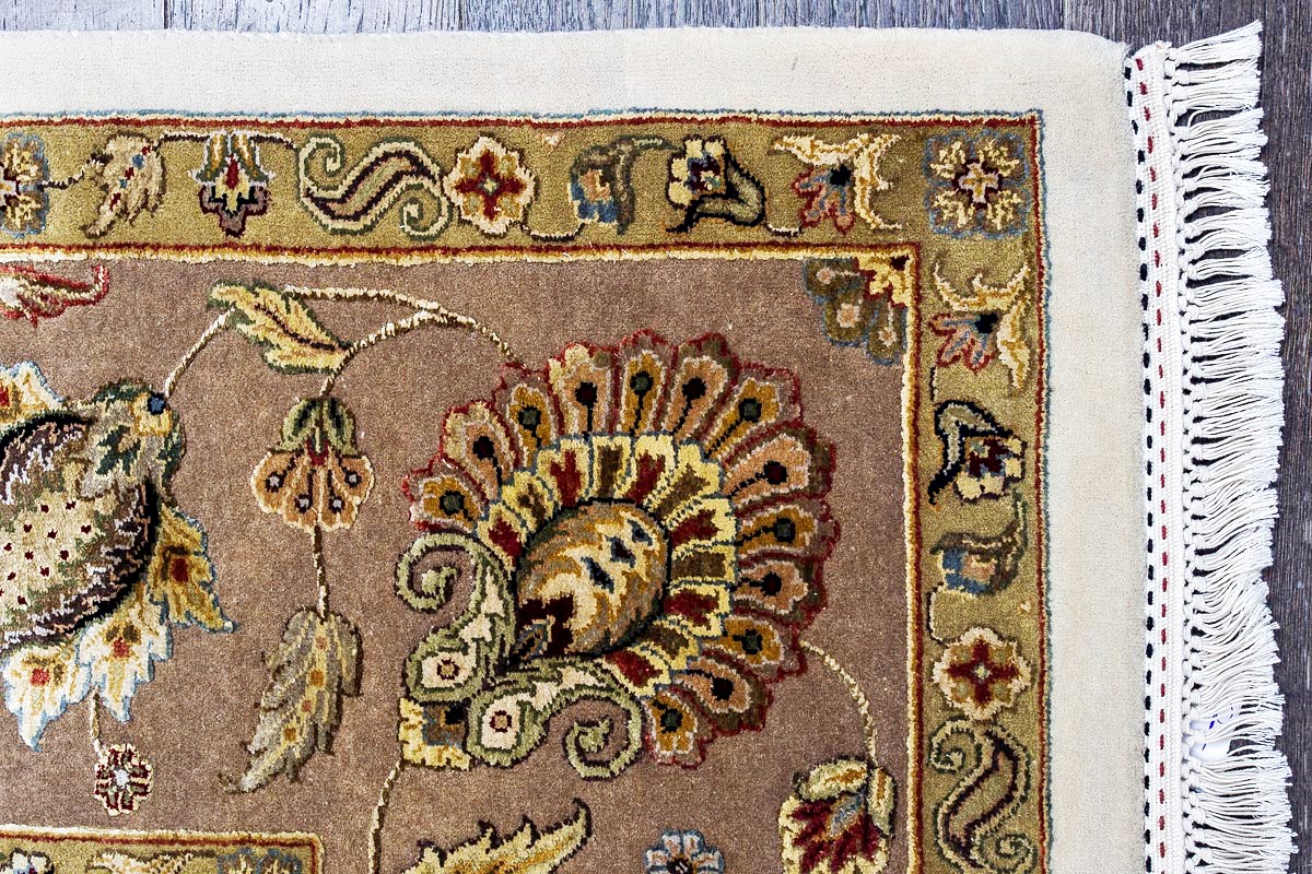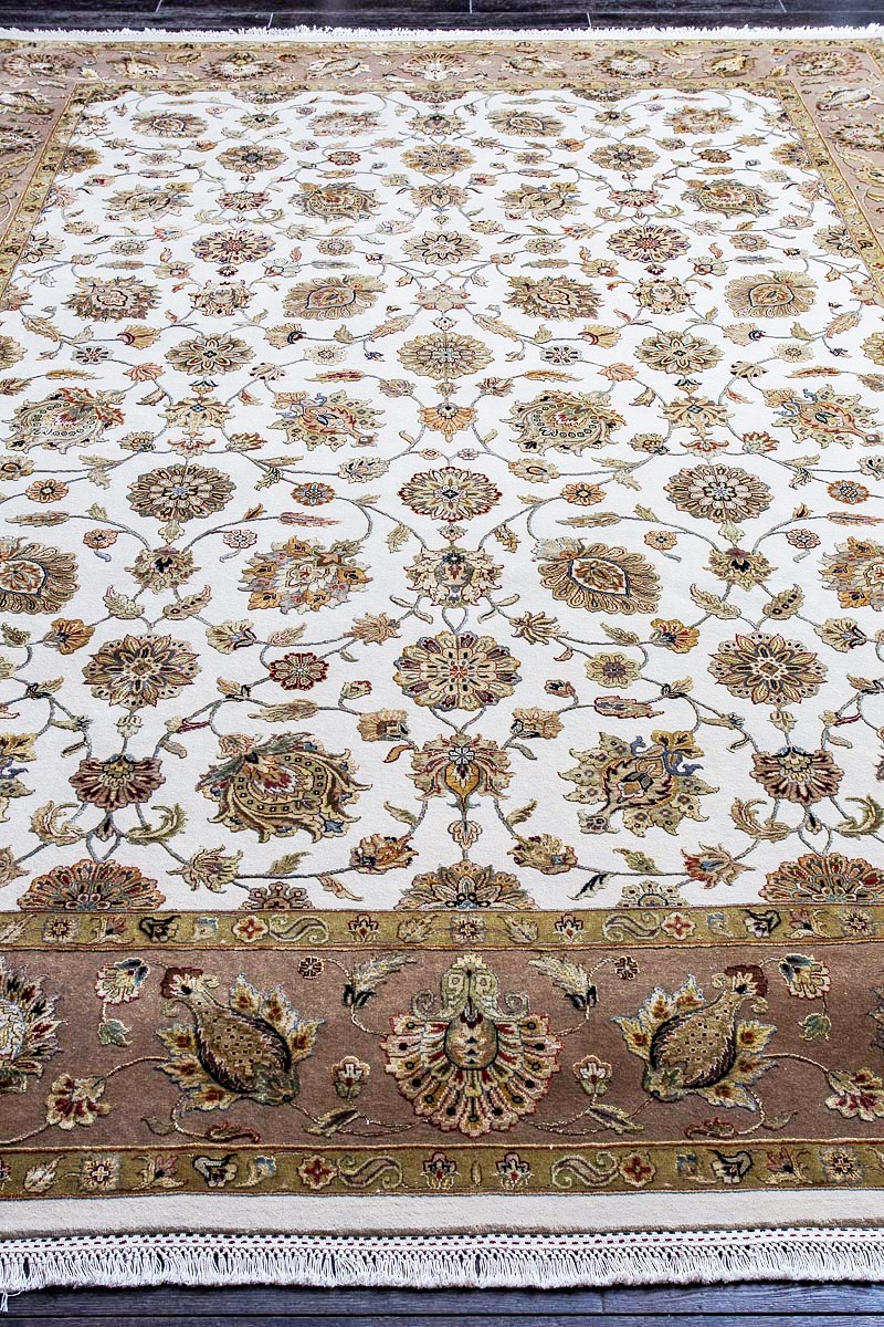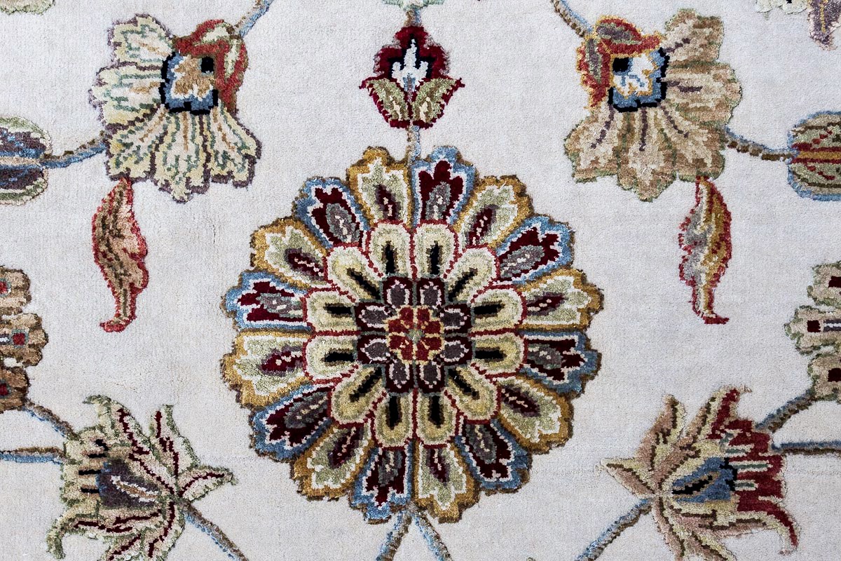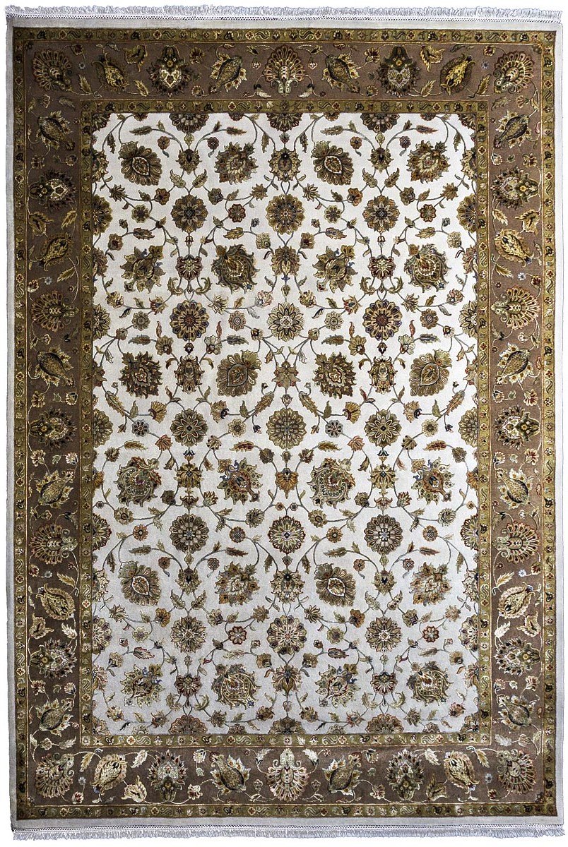 Более пяти веков назад в городе Агра зародилась знаменитая индийская школа ковроткачества, прославившаяся не меньше, чем расположенный здесь же Тадж-Махал. Мощное персидское влияние, помноженное на местный колорит, привело к появлению оригинальных орнаментов с богатыми растительными узорами — причудливым цветам, ветвям и листьям, разбросанным по всему полю ковра.