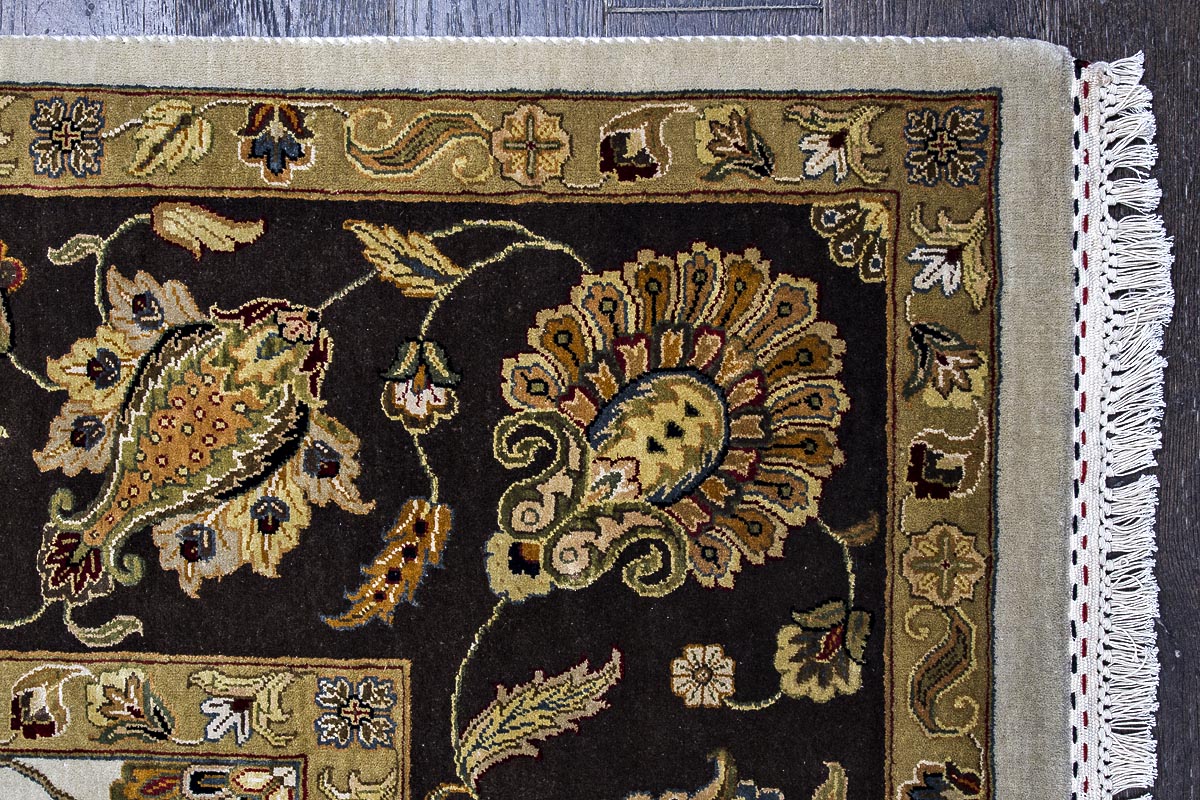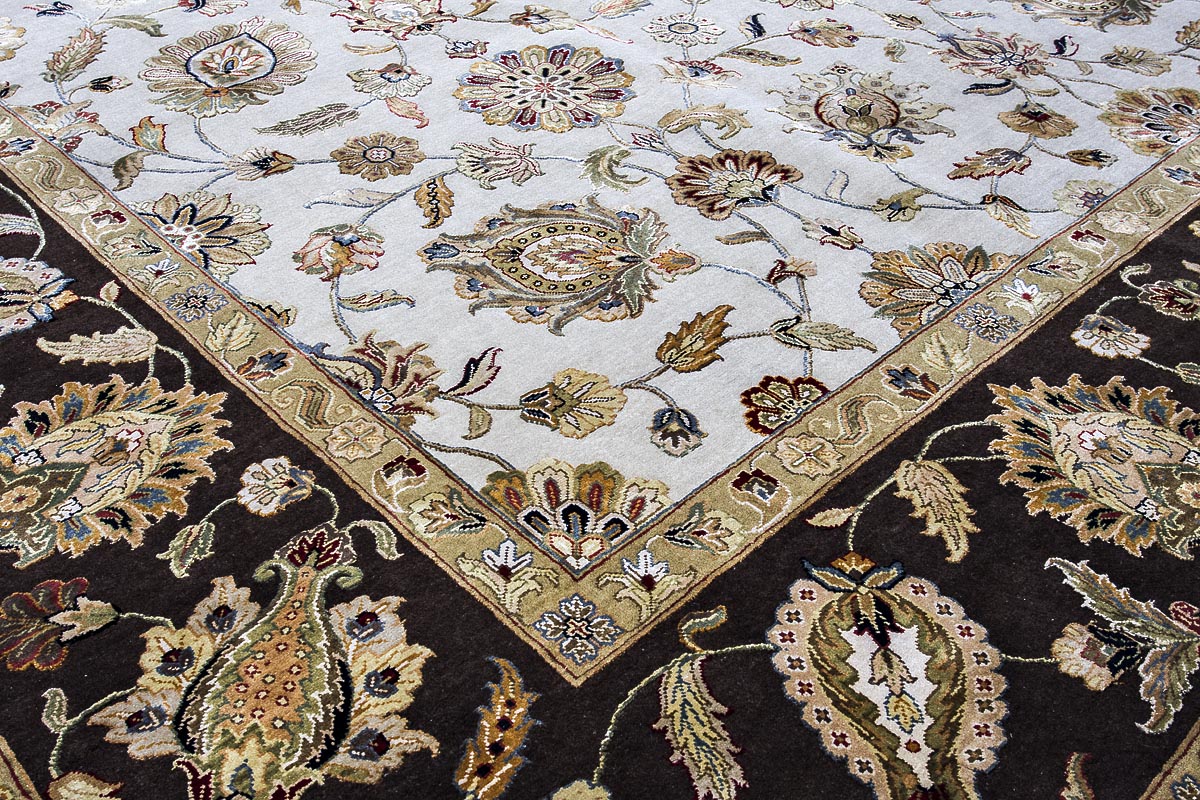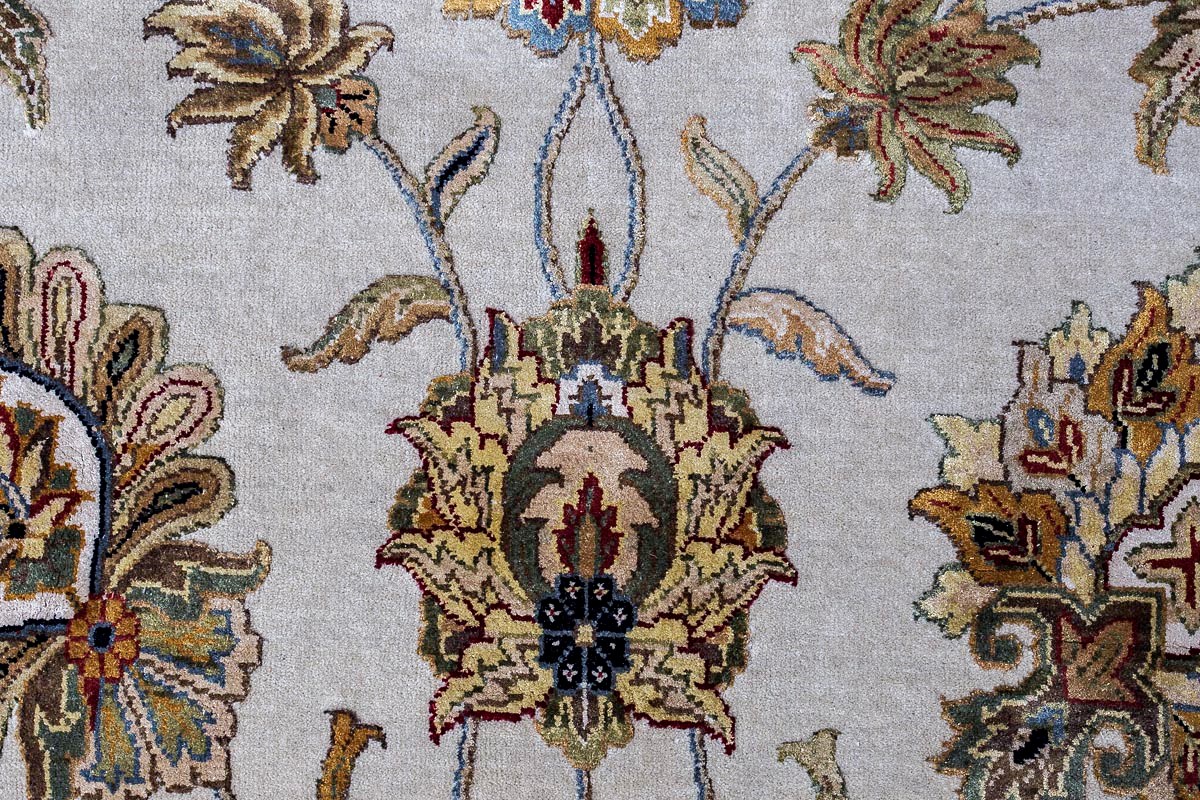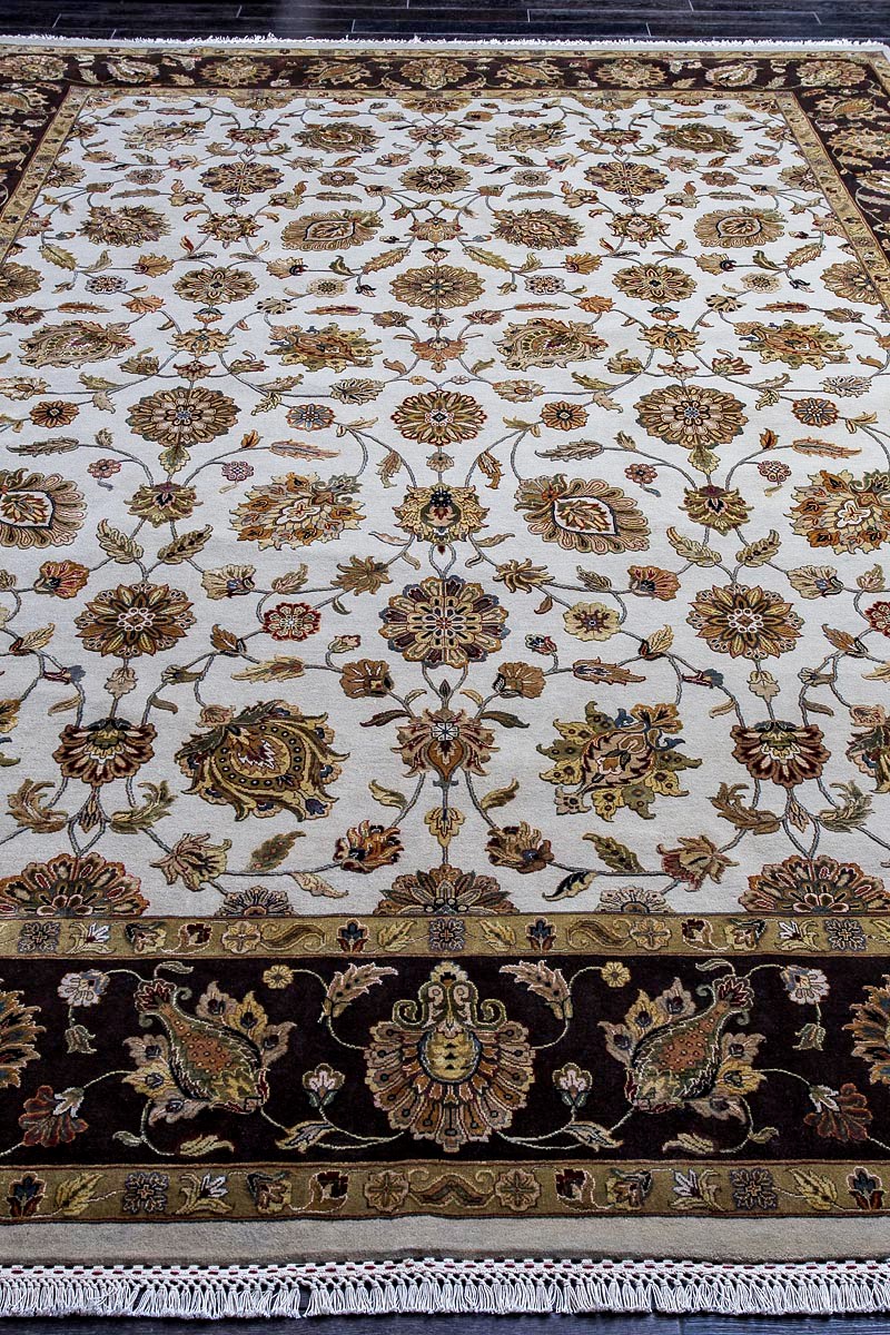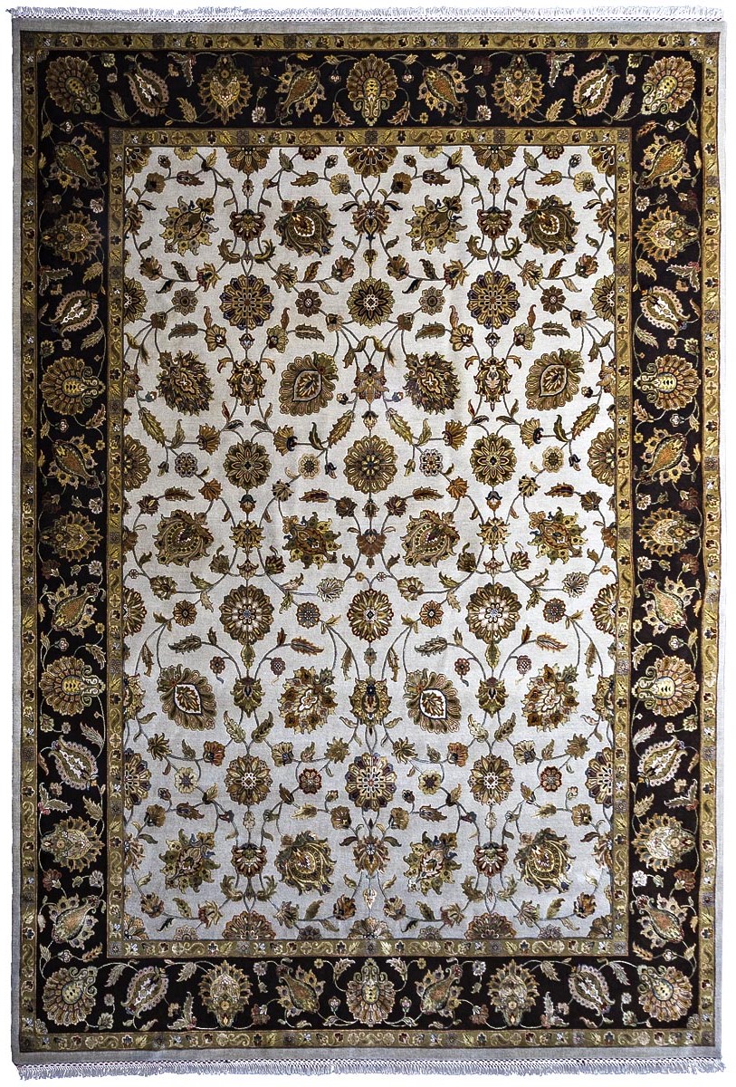 Более пяти веков назад в городе Агра зародилась знаменитая индийская школа ковроткачества, прославившаяся не меньше, чем расположенный здесь же Тадж-Махал. Мощное персидское влияние, помноженное на местный колорит, привело к появлению оригинальных орнаментов с богатыми растительными узорами — причудливым цветам, ветвям и листьям, разбросанным по всему полю ковра.