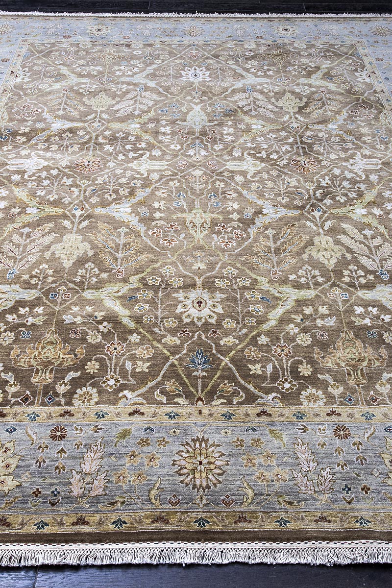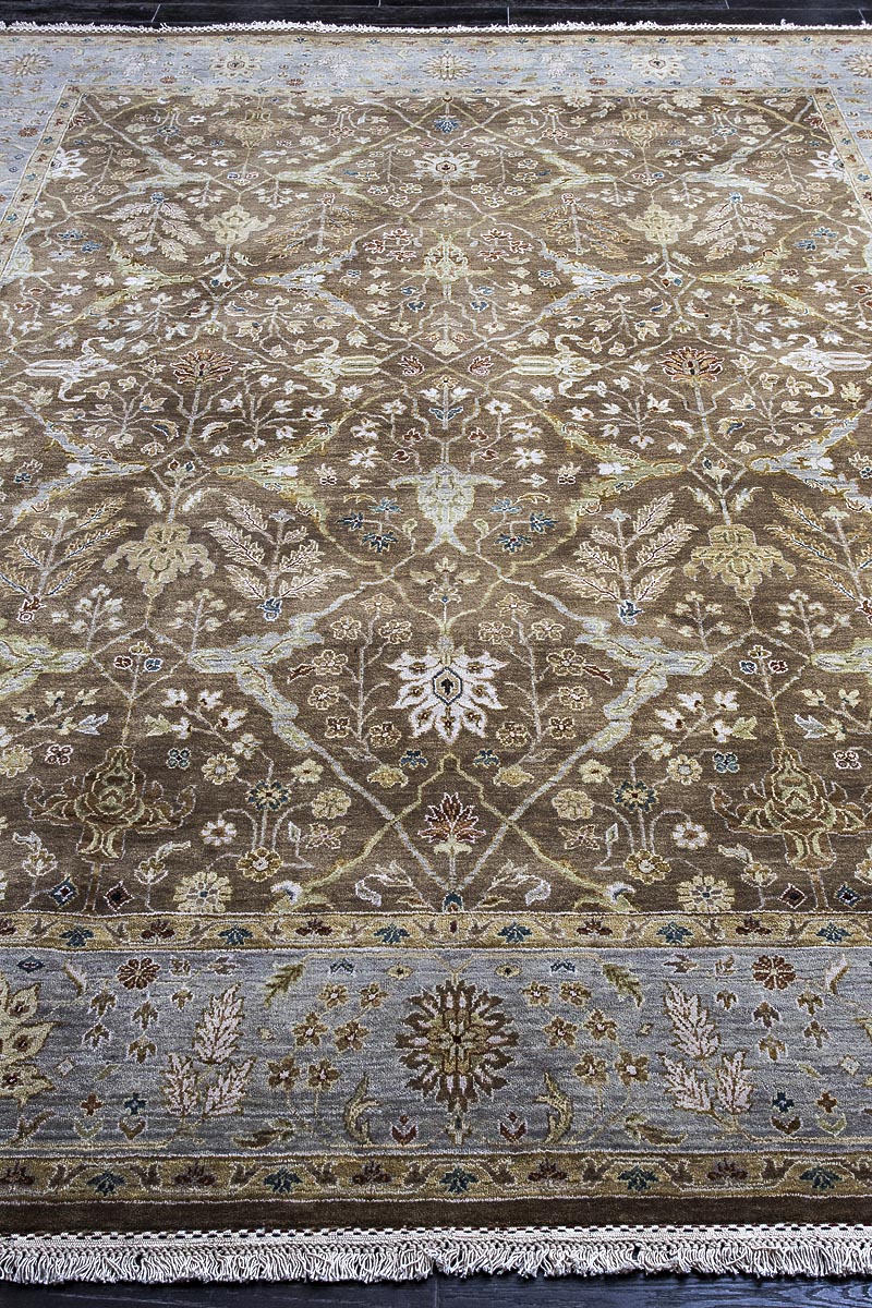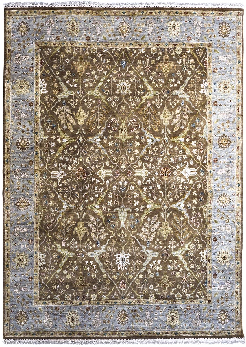 Более пяти веков назад в городе Агра зародилась знаменитая индийская школа ковроткачества, прославившаяся не меньше, чем расположенный здесь же Тадж-Махал. Мощное персидское влияние, помноженное на местный колорит, привело к появлению оригинальных орнаментов с богатыми растительными узорами — причудливым цветам, ветвям и листьям, разбросанным по всему полю ковра.