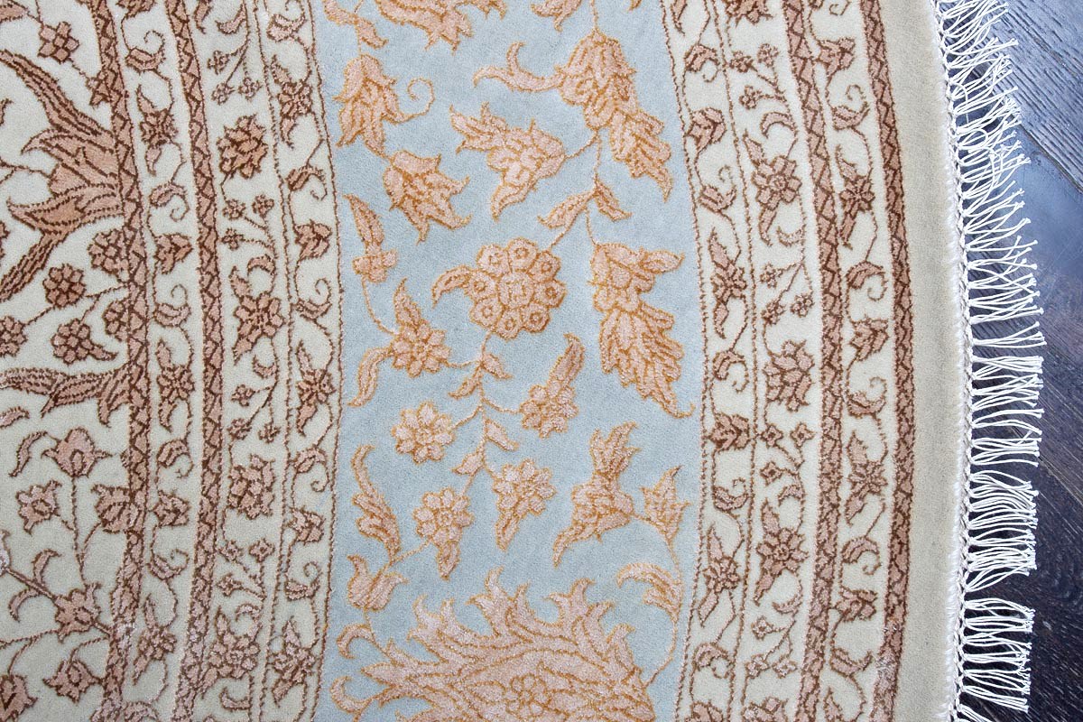 Каждый ковер в этой коллекции соткан вручную из шерсти и арт шёлка опытными индийскими мастерами.