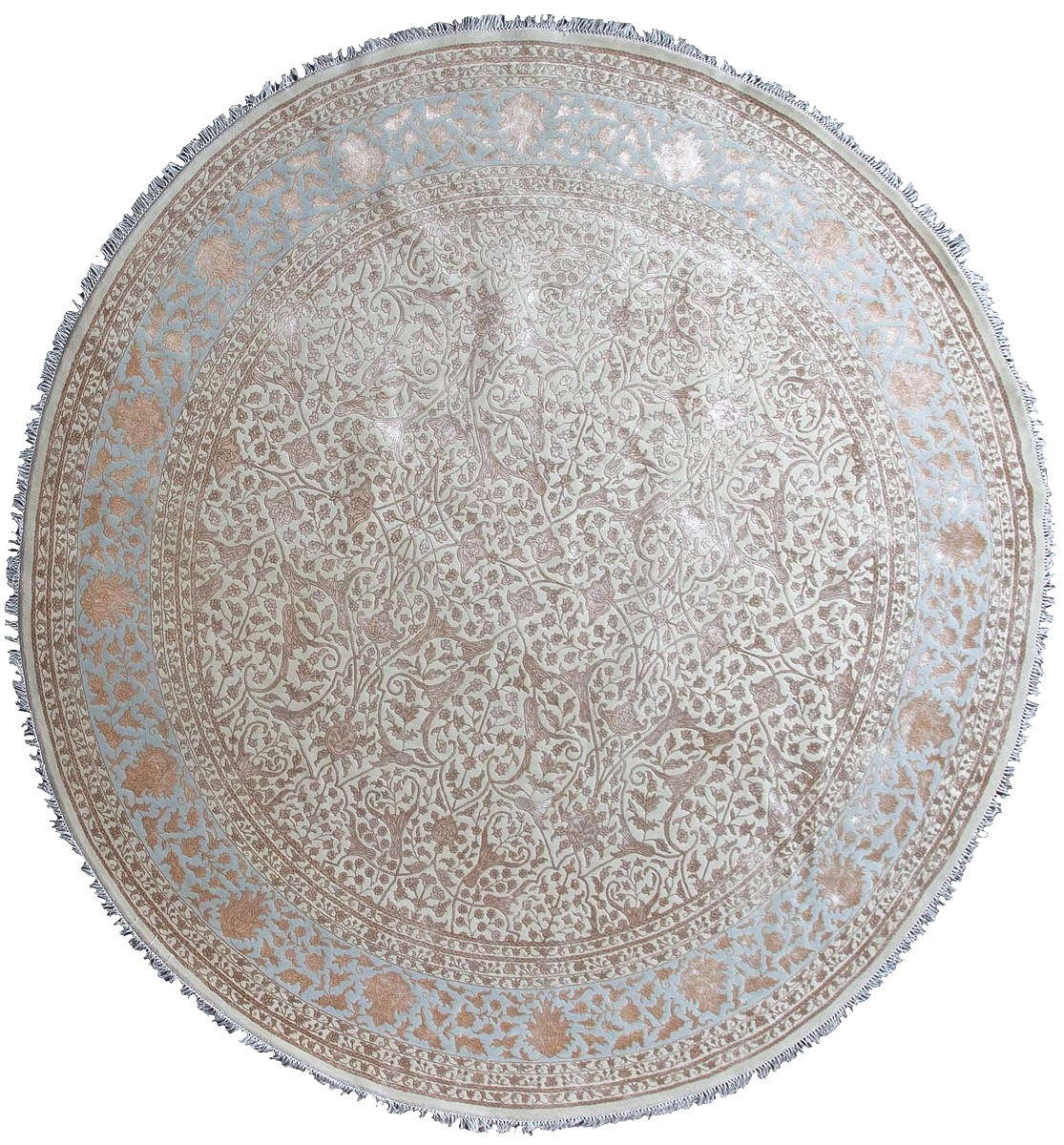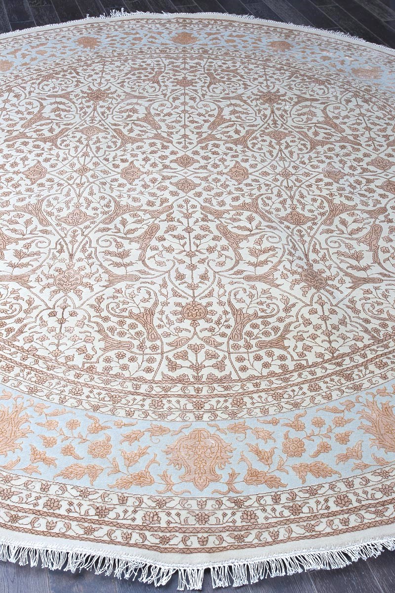 Более пяти веков назад в городе Агра зародилась знаменитая индийская школа ковроткачества, прославившаяся не меньше, чем расположенный здесь же Тадж-Махал. Мощное персидское влияние, помноженное на местный колорит, привело к появлению оригинальных орнаментов с богатыми растительными узорами — причудливым цветам, ветвям и листьям, разбросанным по всему полю ковра.