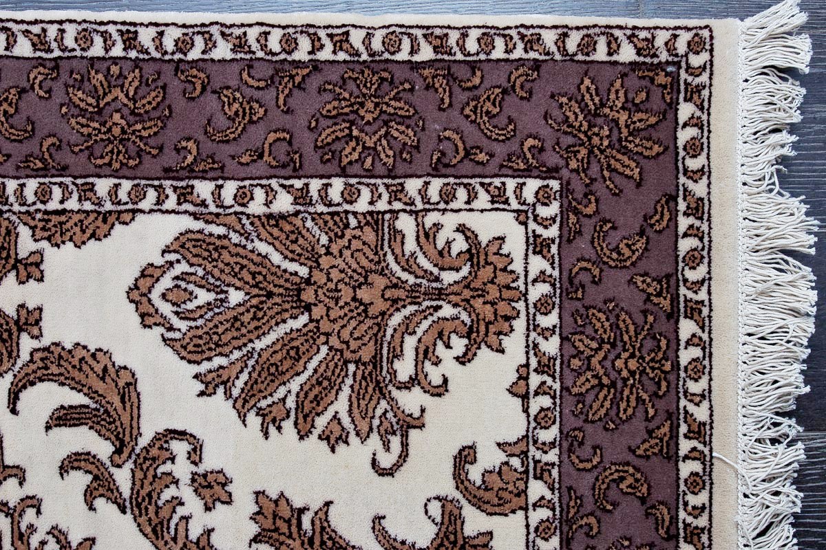 Более пяти веков назад в городе Агра зародилась знаменитая индийская школа ковроткачества, прославившаяся не меньше, чем расположенный здесь же Тадж-Махал. Мощное персидское влияние, помноженное на местный колорит, привело к появлению оригинальных орнаментов с богатыми растительными узорами — причудливым цветам, ветвям и листьям, разбросанным по всему полю ковра.