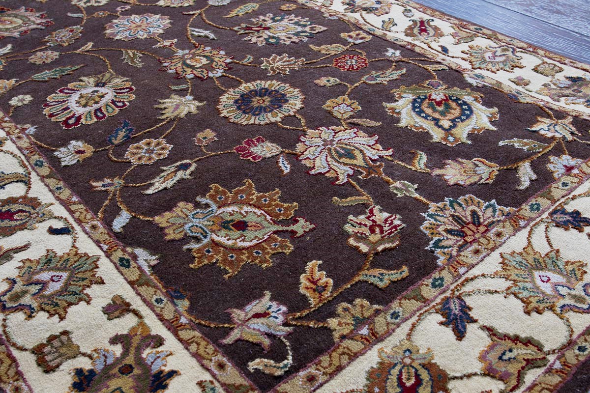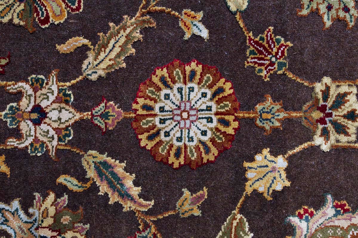 Более пяти веков назад в городе Агра зародилась знаменитая индийская школа ковроткачества, прославившаяся не меньше, чем расположенный здесь же Тадж-Махал. Мощное персидское влияние, помноженное на местный колорит, привело к появлению оригинальных орнаментов с богатыми растительными узорами — причудливым цветам, ветвям и листьям, разбросанным по всему полю ковра.