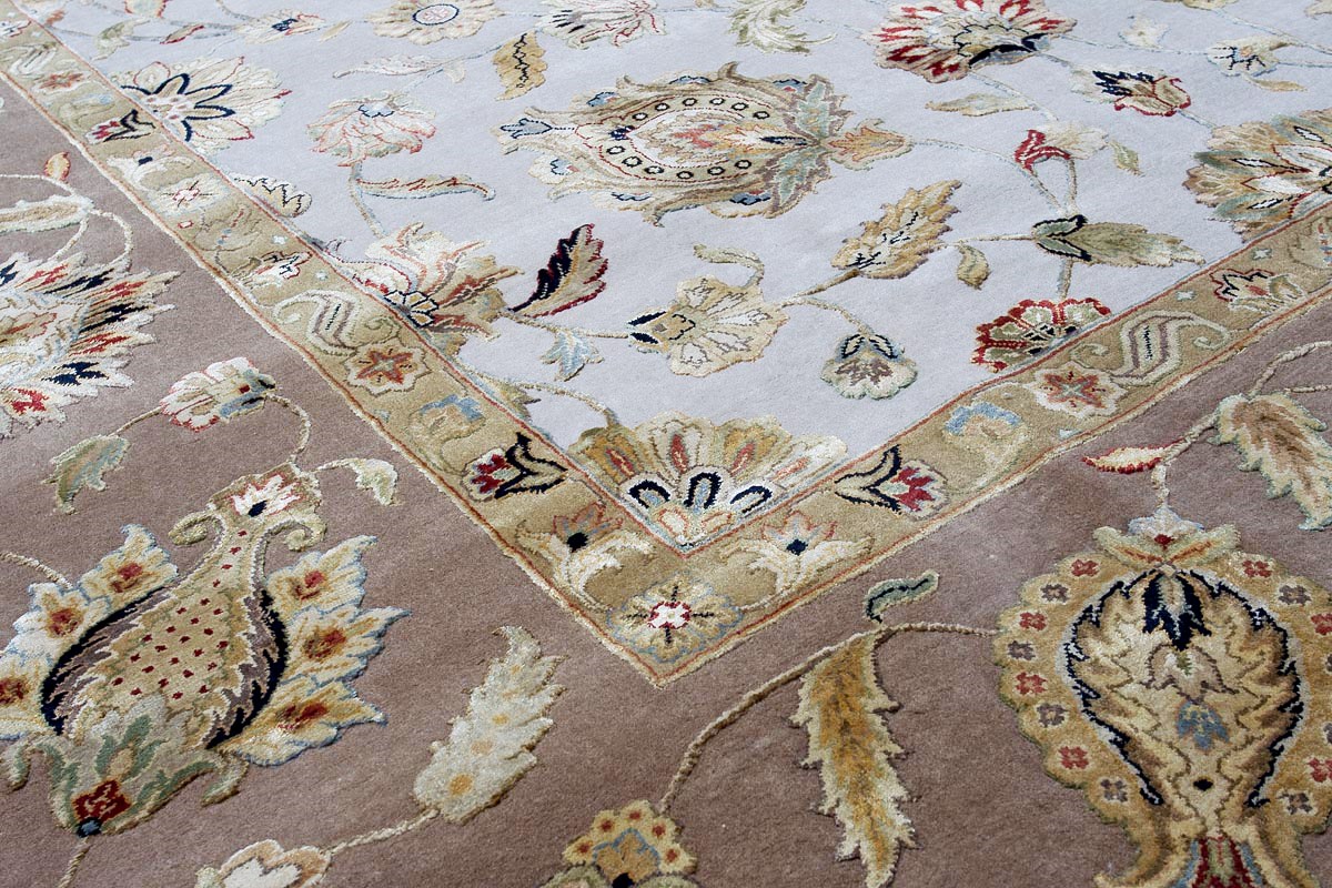 Более пяти веков назад в городе Агра зародилась знаменитая индийская школа ковроткачества, прославившаяся не меньше, чем расположенный здесь же Тадж-Махал. Мощное персидское влияние, помноженное на местный колорит, привело к появлению оригинальных орнаментов с богатыми растительными узорами — причудливым цветам, ветвям и листьям, разбросанным по всему полю ковра.