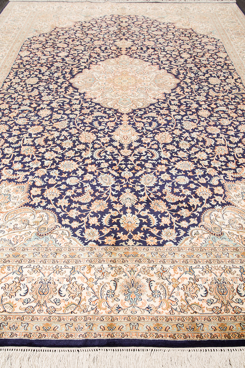 Ковры из коллекции Кашмир ткутся по традиционной технологии из нежнейшего кашмирского шелка. Лучшие произведения индийских мастеров отличает высокая узелковая плотность, прочность и яркость цветов.