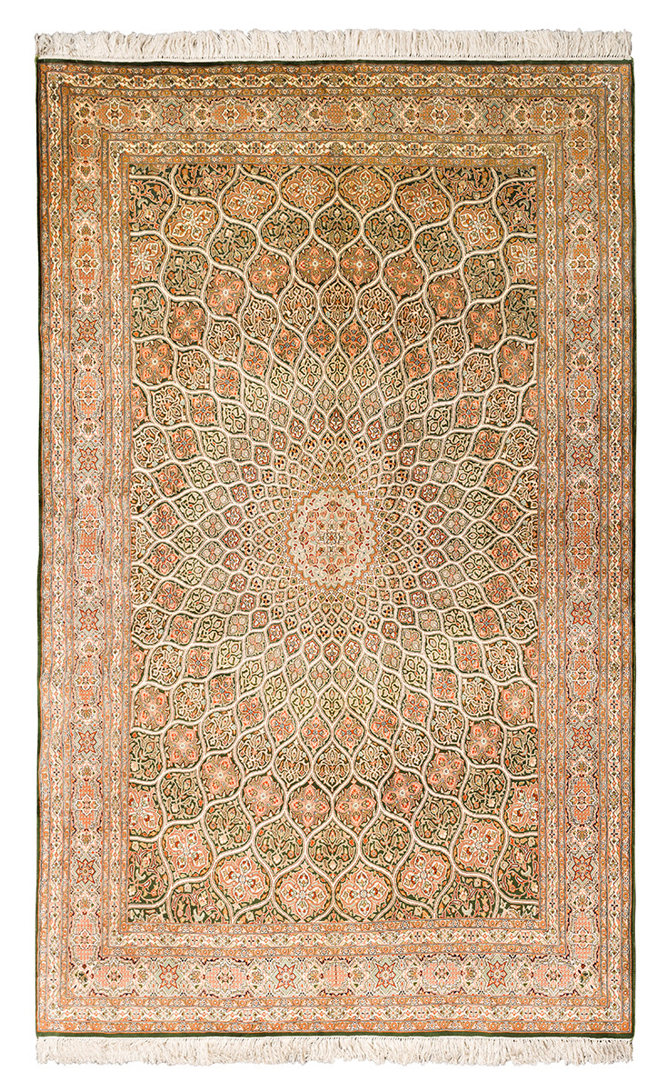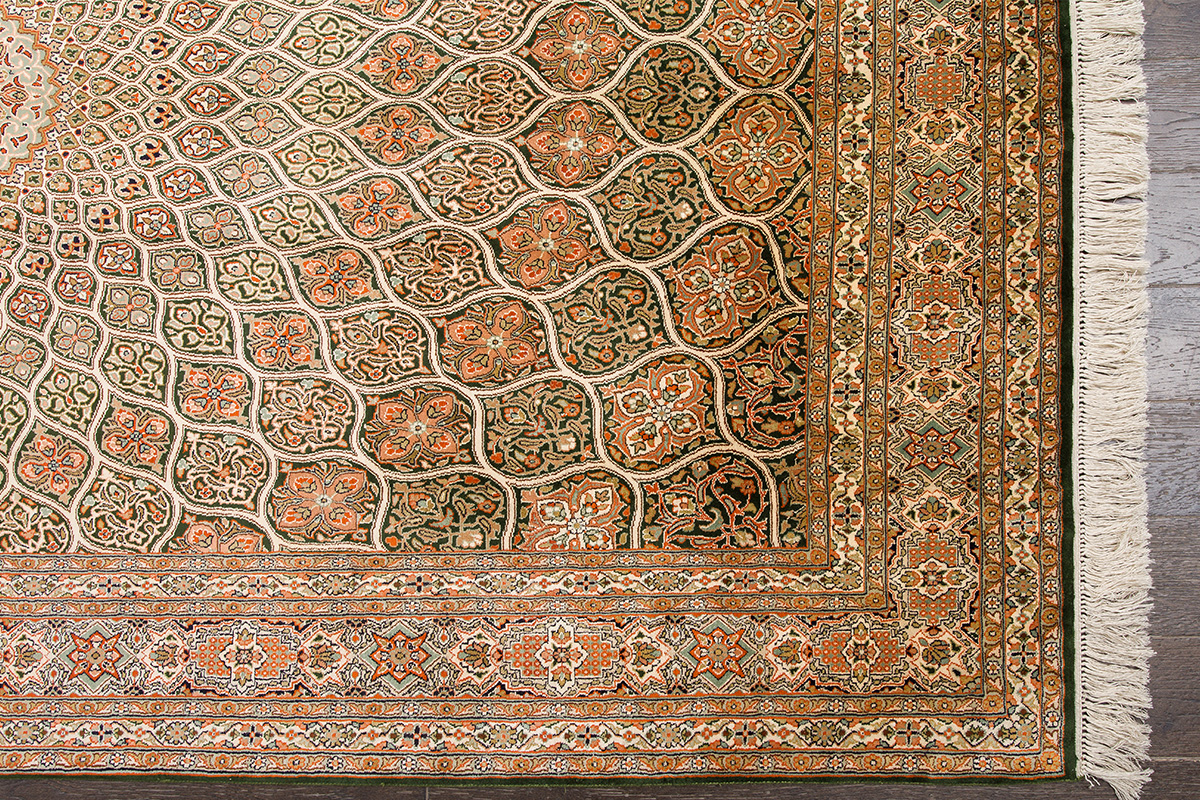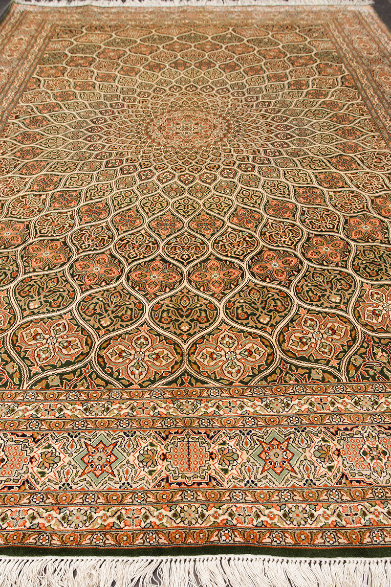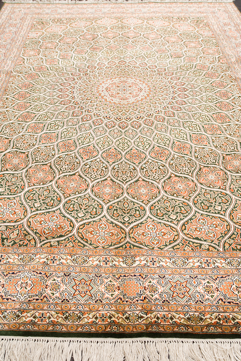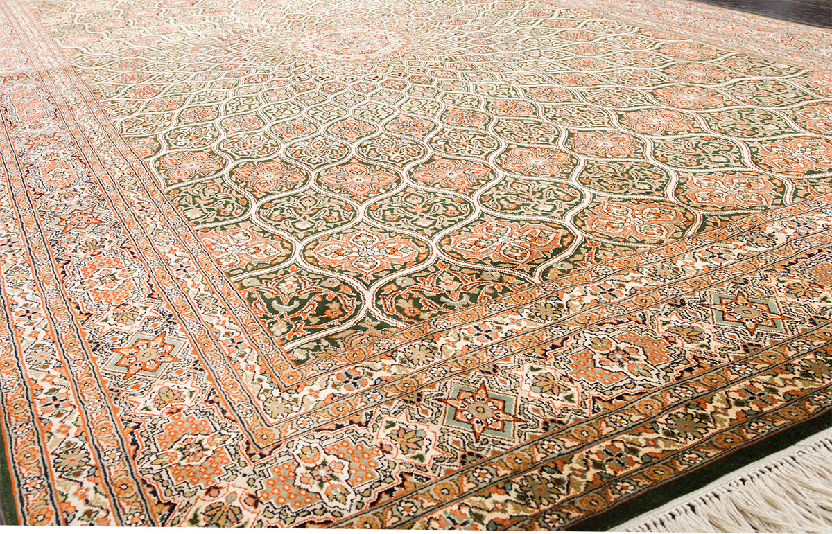 Ковры из коллекции Кашмир ткутся по традиционной технологии из нежнейшего кашмирского шелка. Лучшие произведения индийских мастеров отличает высокая узелковая плотность, прочность и яркость цветов.