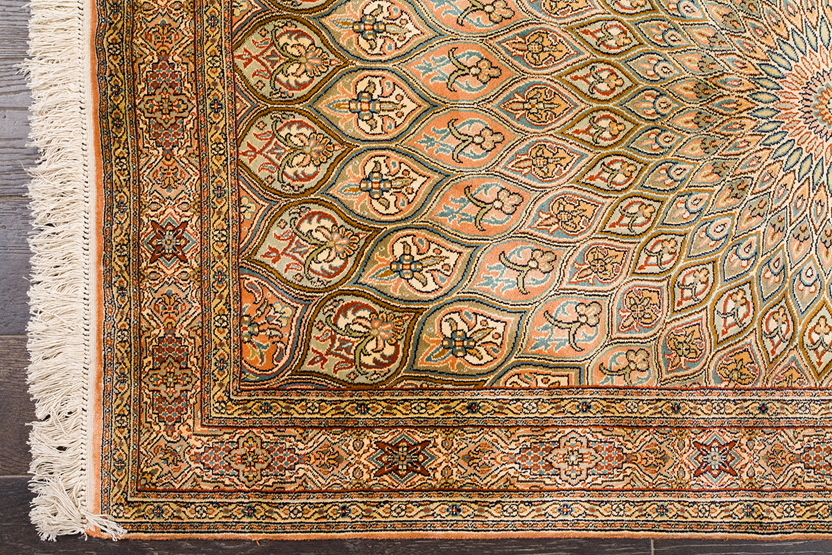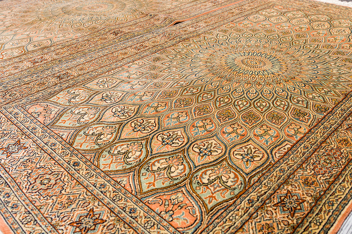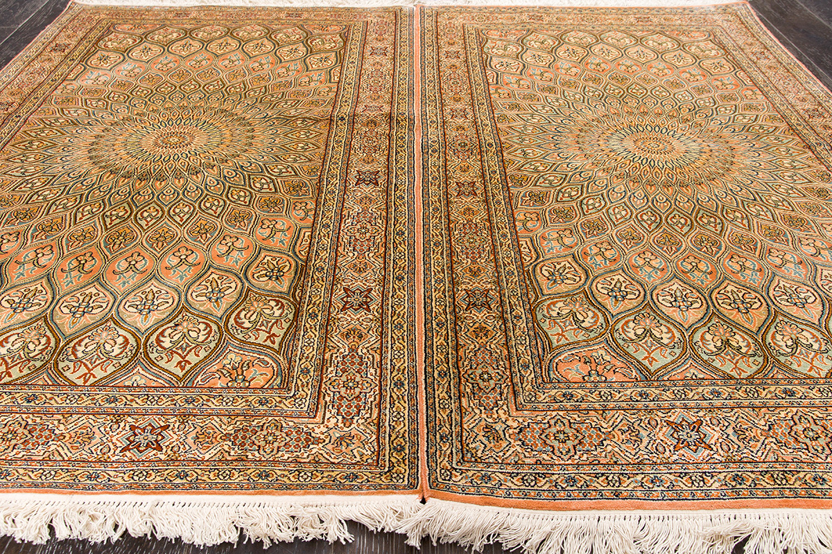 Ковры из коллекции Кашмир ткутся по традиционной технологии из нежнейшего кашмирского шелка. Лучшие произведения индийских мастеров отличает высокая узелковая плотность, прочность и яркость цветов.