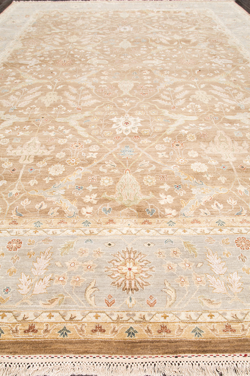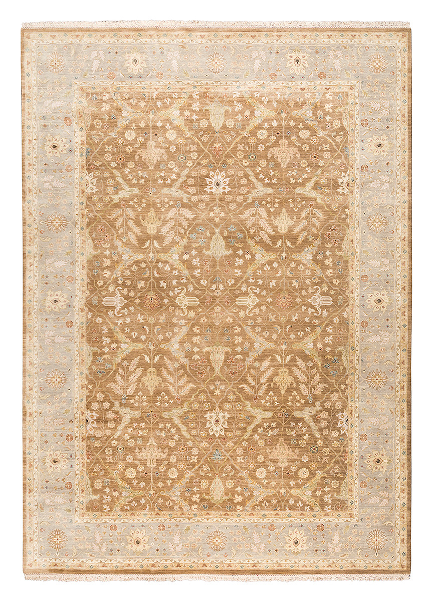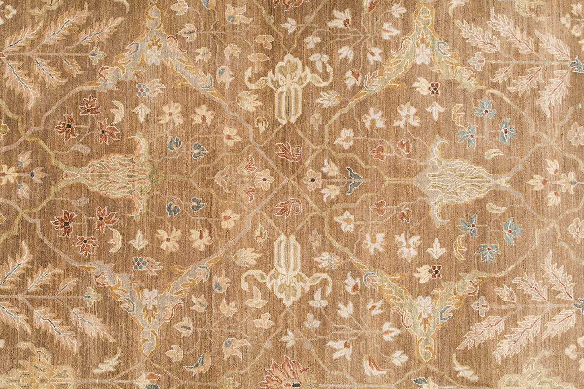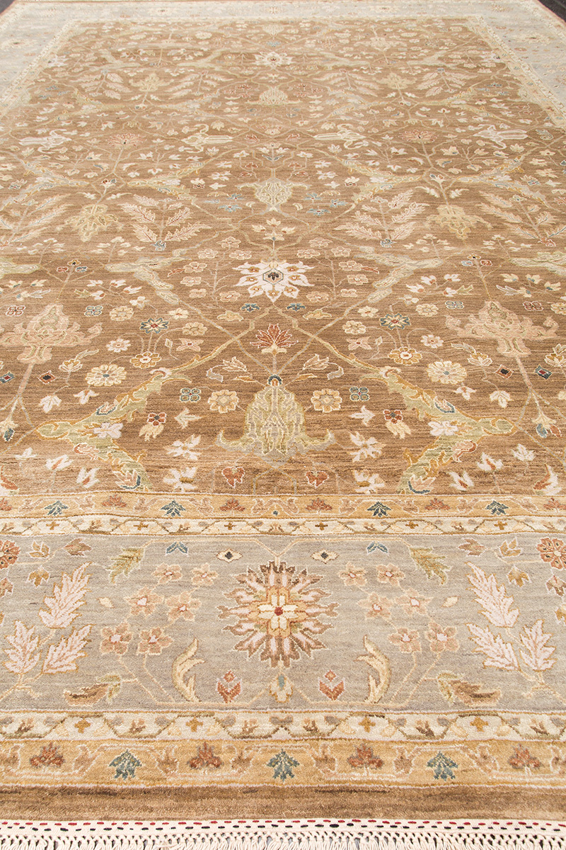 Более пяти веков назад в городе Агра зародилась знаменитая индийская школа ковроткачества, прославившаяся не меньше, чем расположенный здесь же Тадж-Махал. Мощное персидское влияние, помноженное на местный колорит, привело к появлению оригинальных орнаментов с богатыми растительными узорами — причудливым цветам, ветвям и листьям, разбросанным по всему полю ковра.