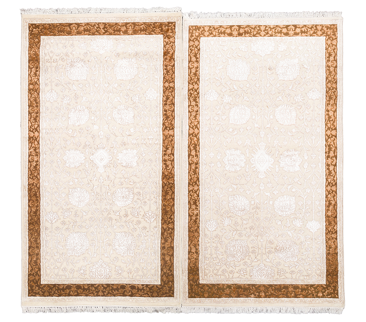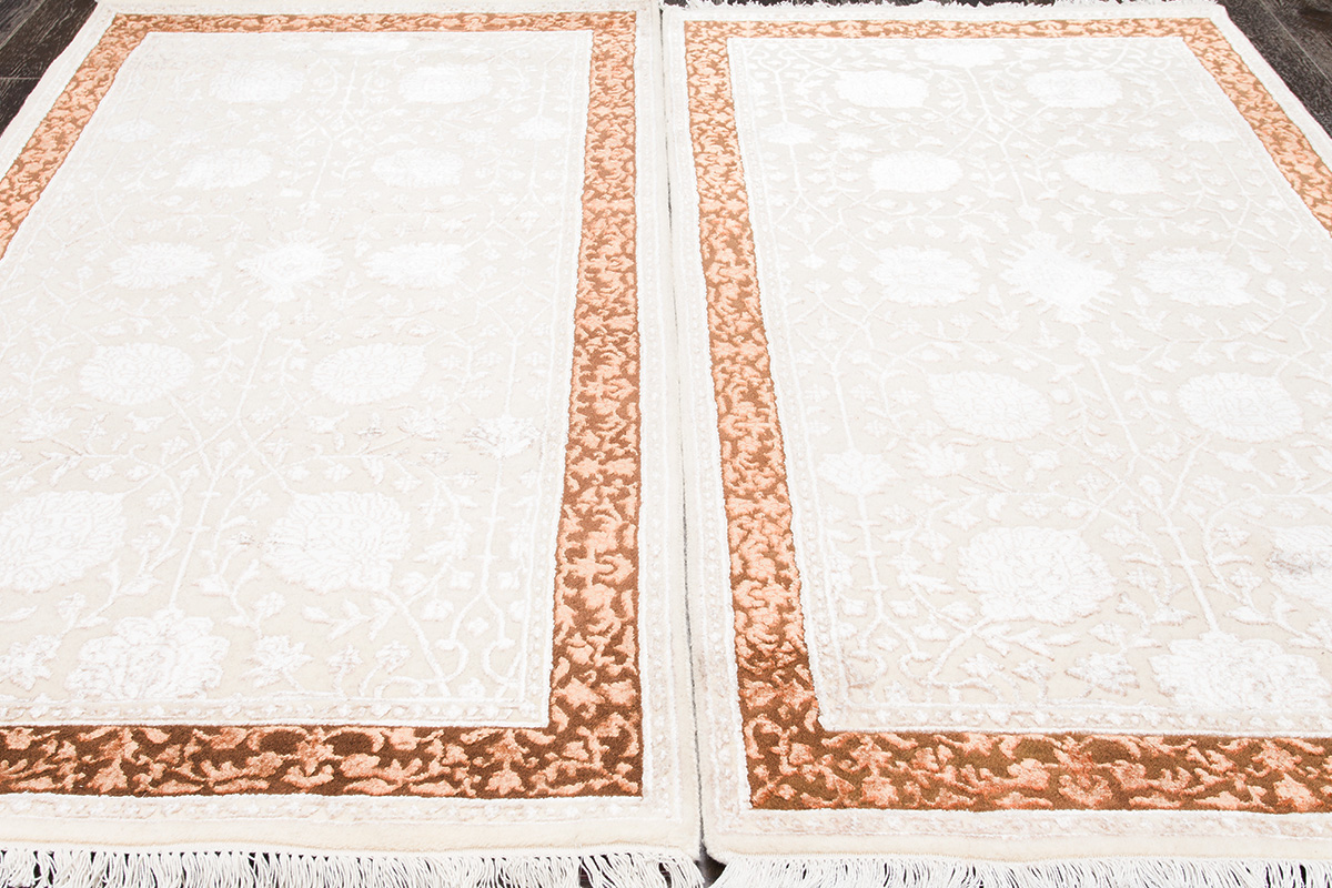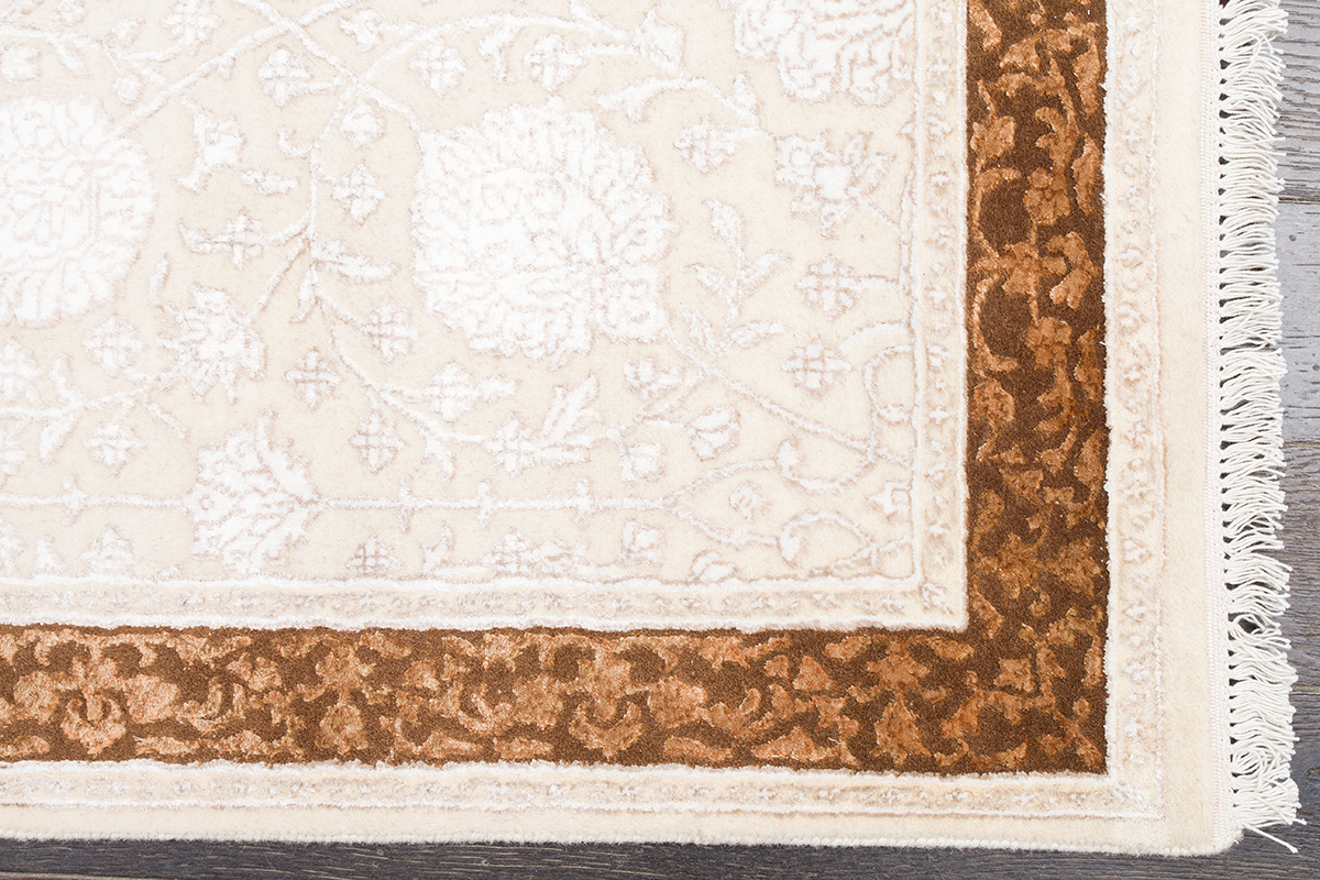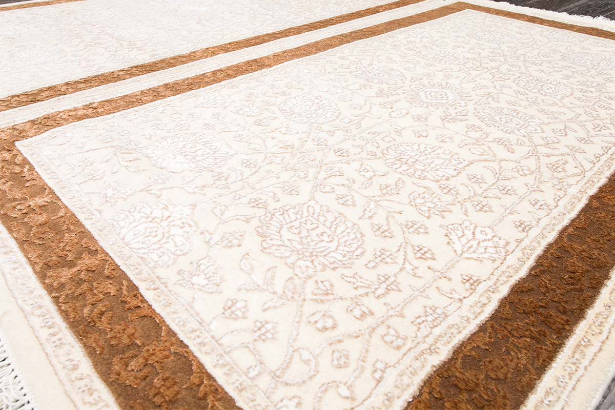 Каждый ковер в этой коллекции соткан вручную из шерсти и арт шёлка опытными индийскими мастерами.