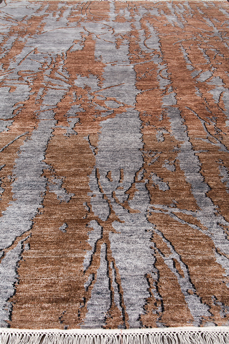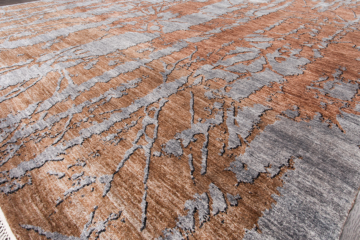 Дизайн ковров напоминает современные полотна художников-абстракционистов и производит столь же яркое и незабываемое впечатление в интерьере. Живописный эффект и необычная фактура зависят от выбора материала: натуральной шерсти, шёлка и от их сочетаний друг с другом. Ковры ткутся вручную в лучших мастерских Индии и Пакистана.