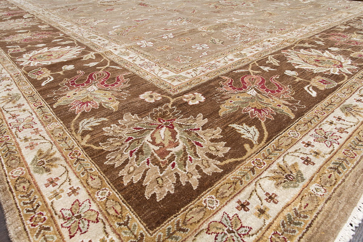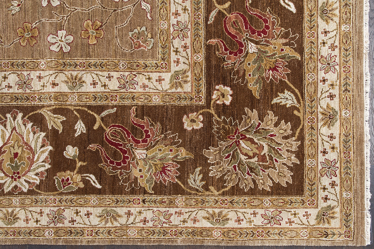 Более пяти веков назад в городе Агра зародилась знаменитая индийская школа ковроткачества, прославившаяся не меньше, чем расположенный здесь же Тадж-Махал. Мощное персидское влияние, помноженное на местный колорит, привело к появлению оригинальных орнаментов с богатыми растительными узорами — причудливым цветам, ветвям и листьям, разбросанным по всему полю ковра.