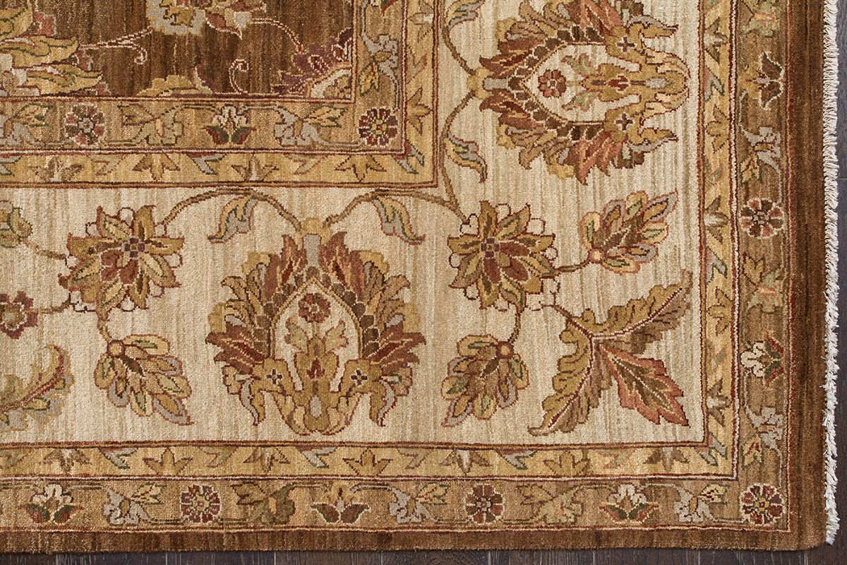 Более пяти веков назад в городе Агра зародилась знаменитая индийская школа ковроткачества, прославившаяся не меньше, чем расположенный здесь же Тадж-Махал. Мощное персидское влияние, помноженное на местный колорит, привело к появлению оригинальных орнаментов с богатыми растительными узорами — причудливым цветам, ветвям и листьям, разбросанным по всему полю ковра.