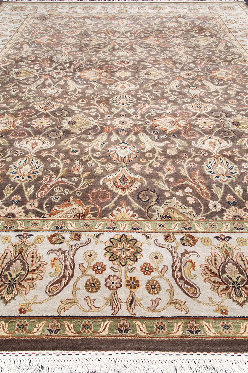 Более пяти веков назад в городе Агра зародилась знаменитая индийская школа ковроткачества, прославившаяся не меньше, чем расположенный здесь же Тадж-Махал. Мощное персидское влияние, помноженное на местный колорит, привело к появлению оригинальных орнаментов с богатыми растительными узорами — причудливым цветам, ветвям и листьям, разбросанным по всему полю ковра.