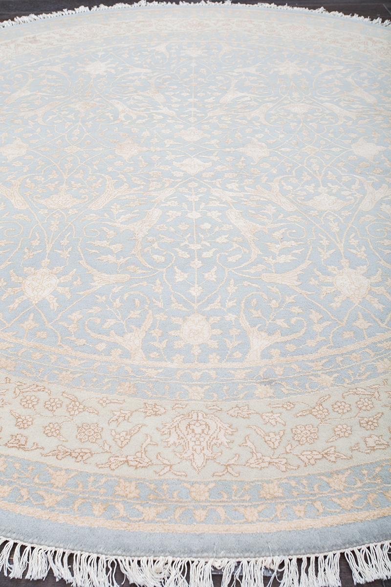 Каждый ковер в этой коллекции соткан вручную из шерсти и арт шёлка опытными индийскими мастерами.
