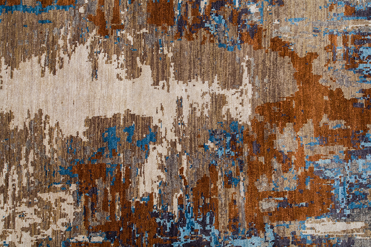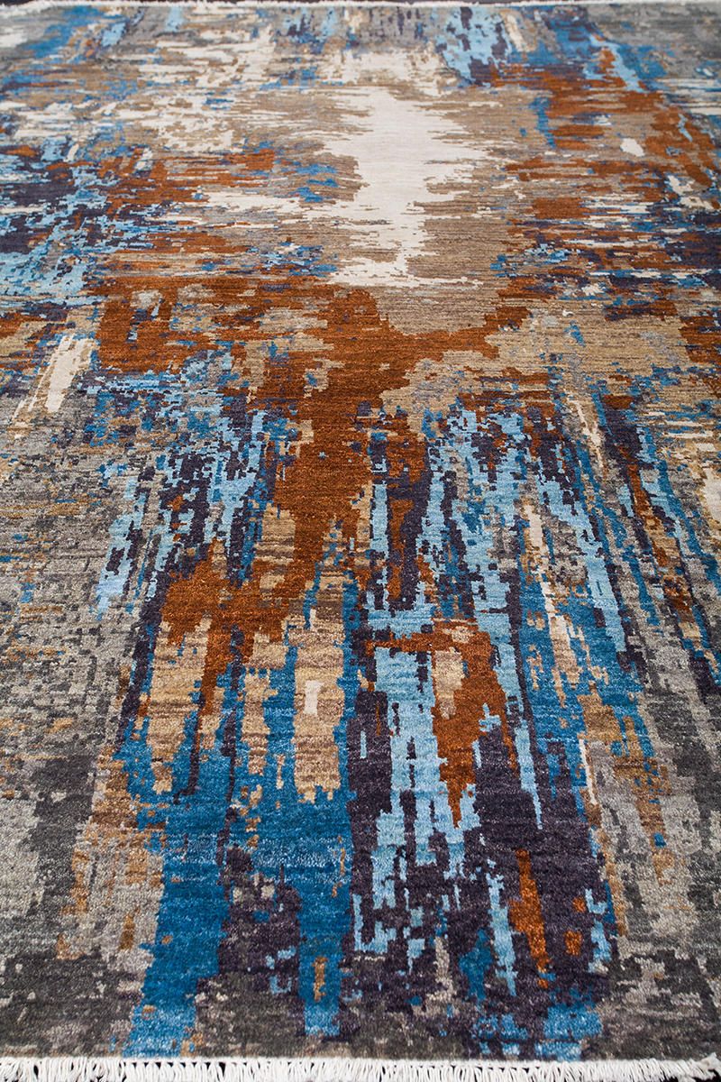 Дизайн ковров напоминает современные полотна художников-абстракционистов и производит столь же яркое и незабываемое впечатление в интерьере. Живописный эффект и необычная фактура зависят от выбора материала: натуральной шерсти, шёлка и от их сочетаний друг с другом. Ковры ткутся вручную в лучших мастерских Индии и Пакистана.