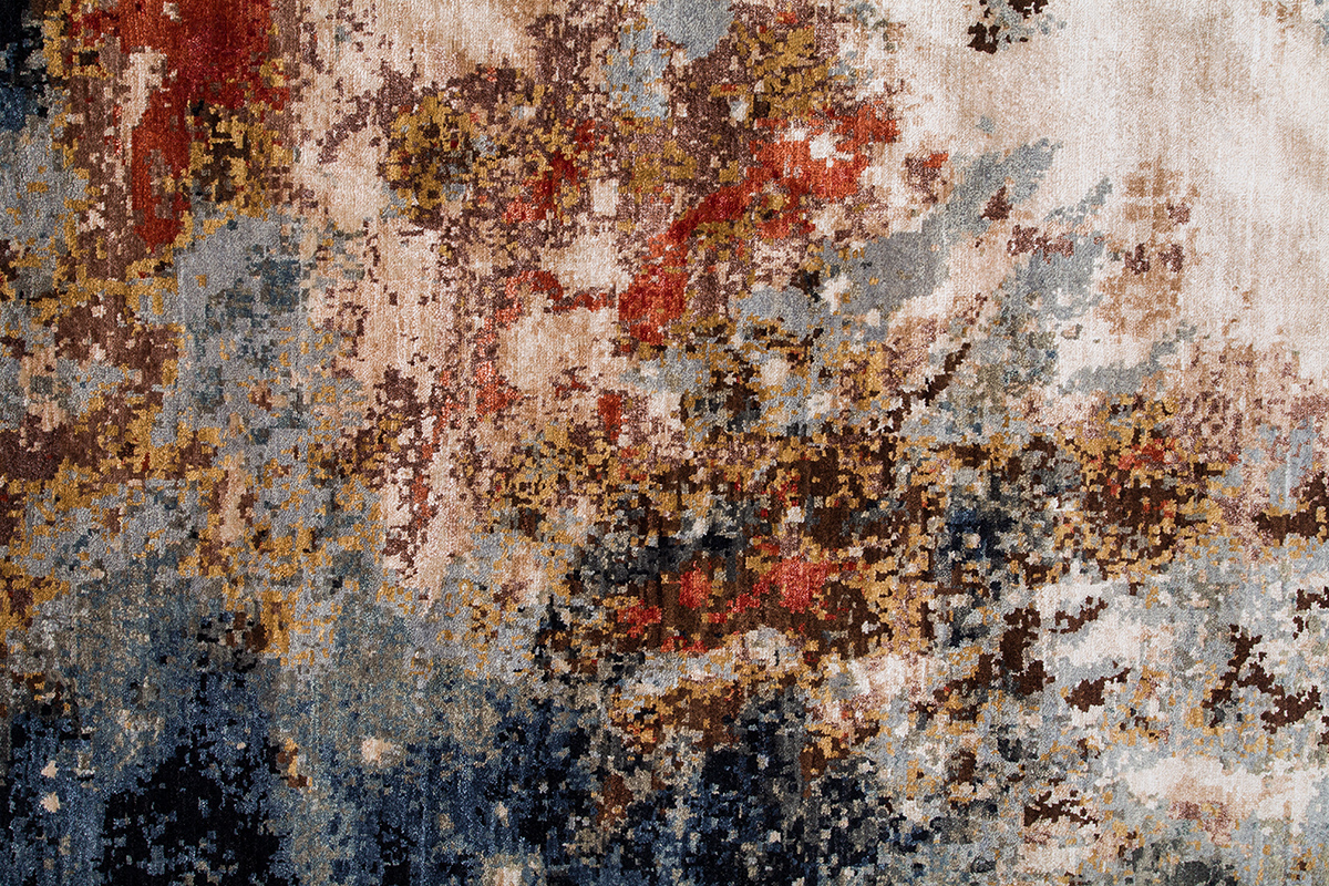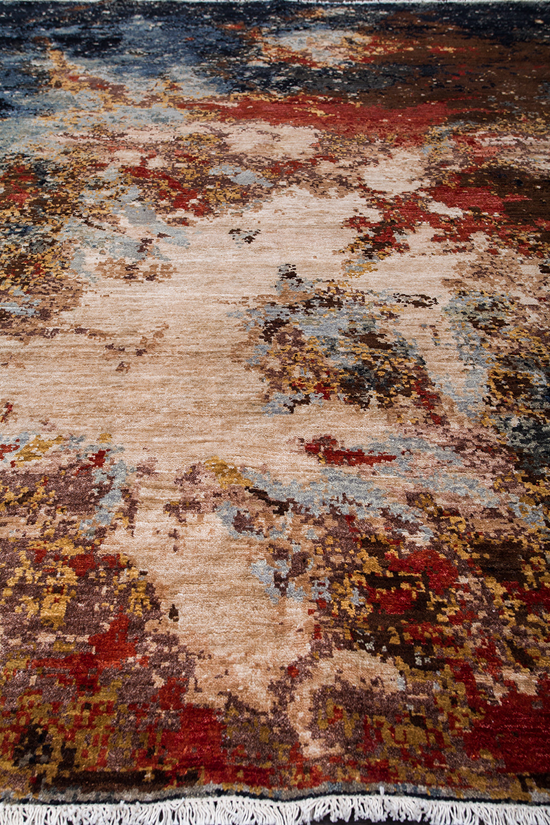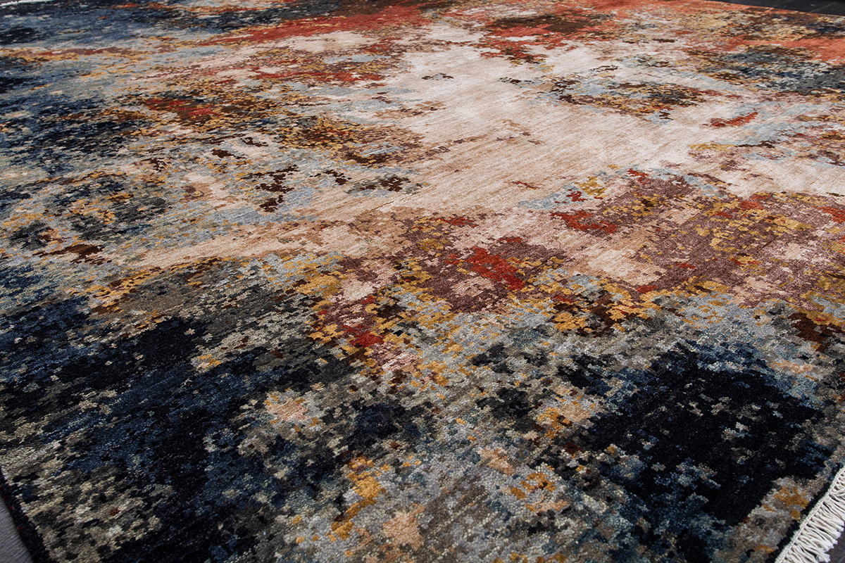Дизайн ковров напоминает современные полотна художников-абстракционистов и производит столь же яркое и незабываемое впечатление в интерьере. Живописный эффект и необычная фактура зависят от выбора материала: натуральной шерсти, шёлка и от их сочетаний друг с другом. Ковры ткутся вручную в лучших мастерских Индии и Пакистана.