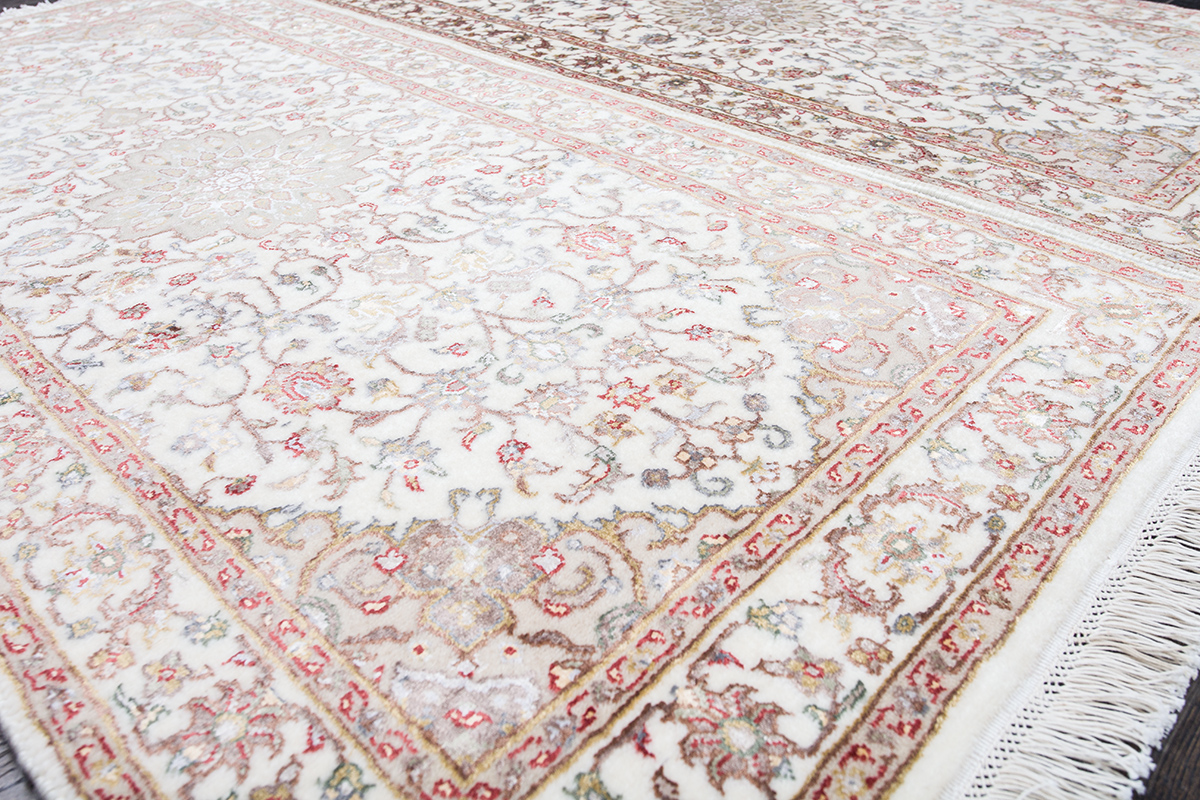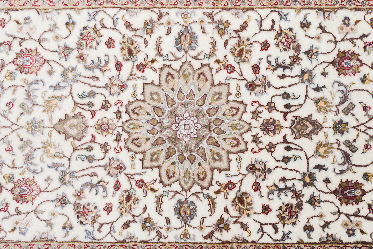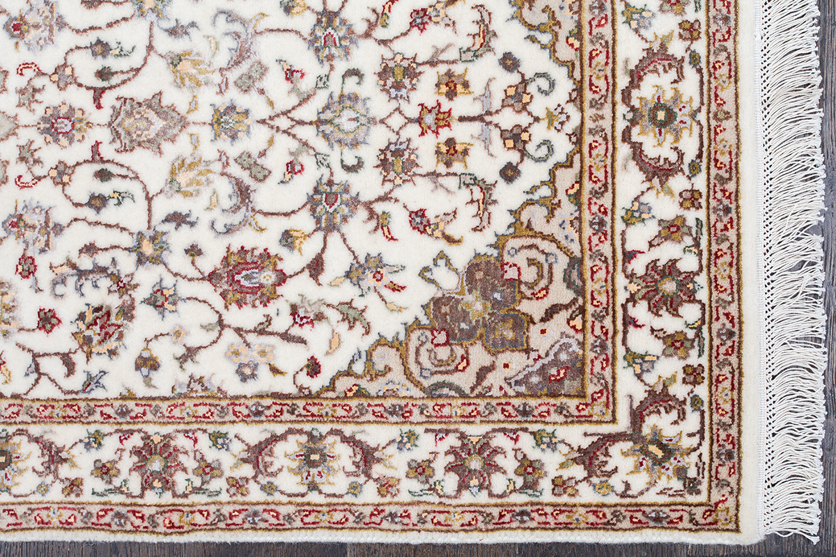 Более пяти веков назад в городе Агра зародилась знаменитая индийская школа ковроткачества, прославившаяся не меньше, чем расположенный здесь же Тадж-Махал. Мощное персидское влияние, помноженное на местный колорит, привело к появлению оригинальных орнаментов с богатыми растительными узорами — причудливым цветам, ветвям и листьям, разбросанным по всему полю ковра.