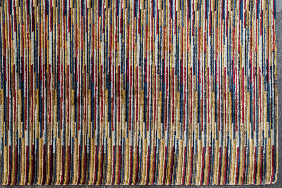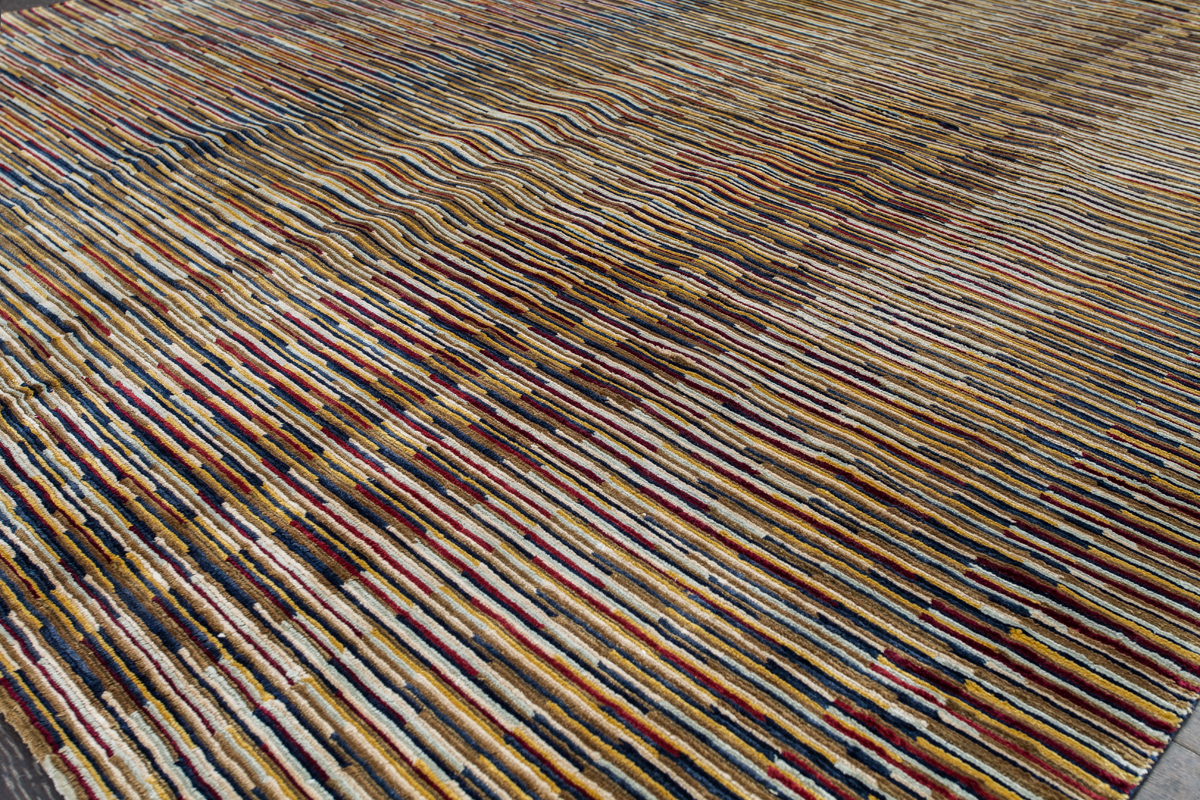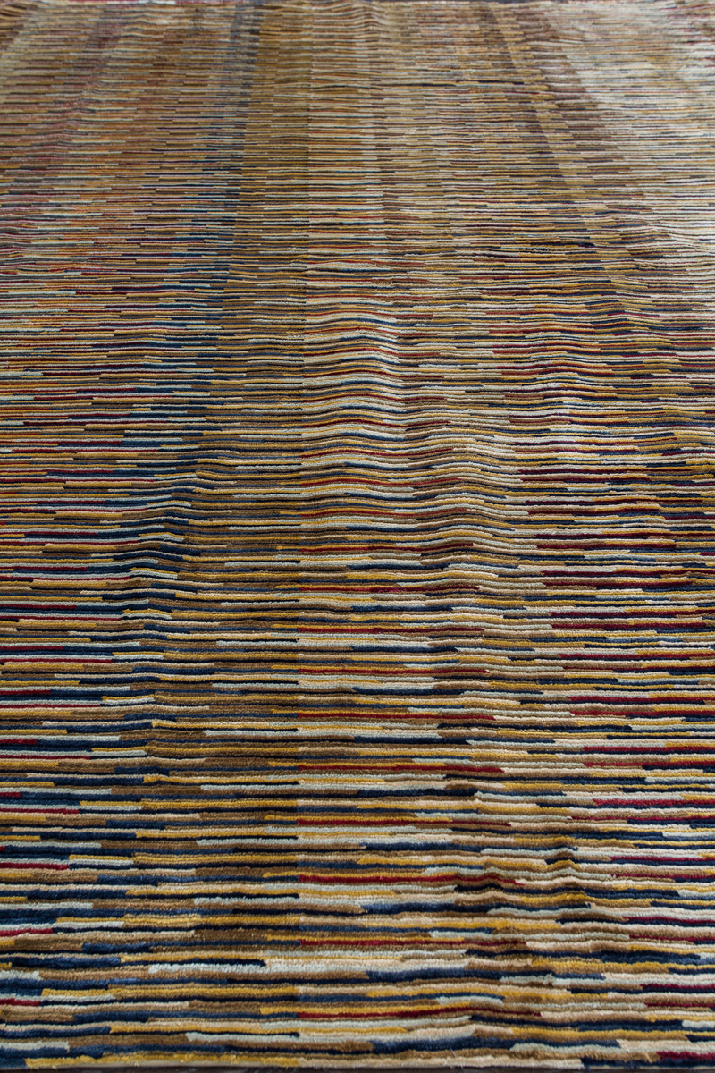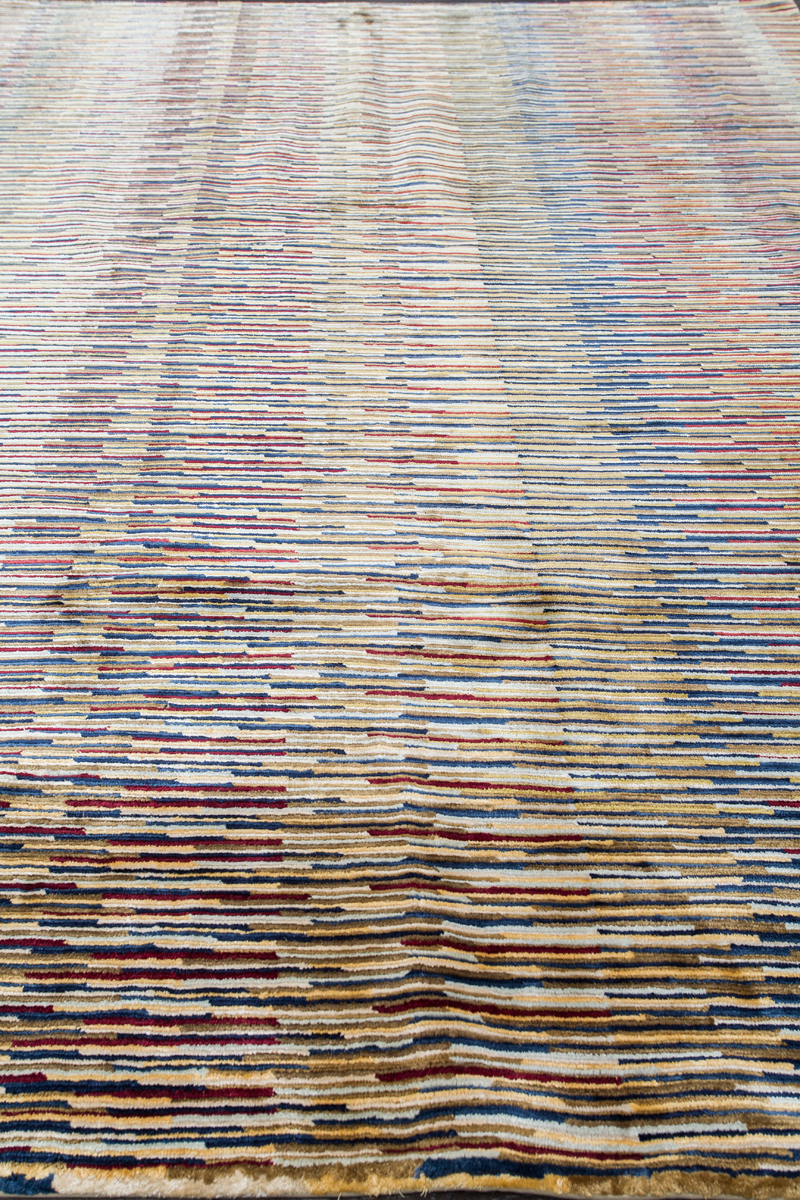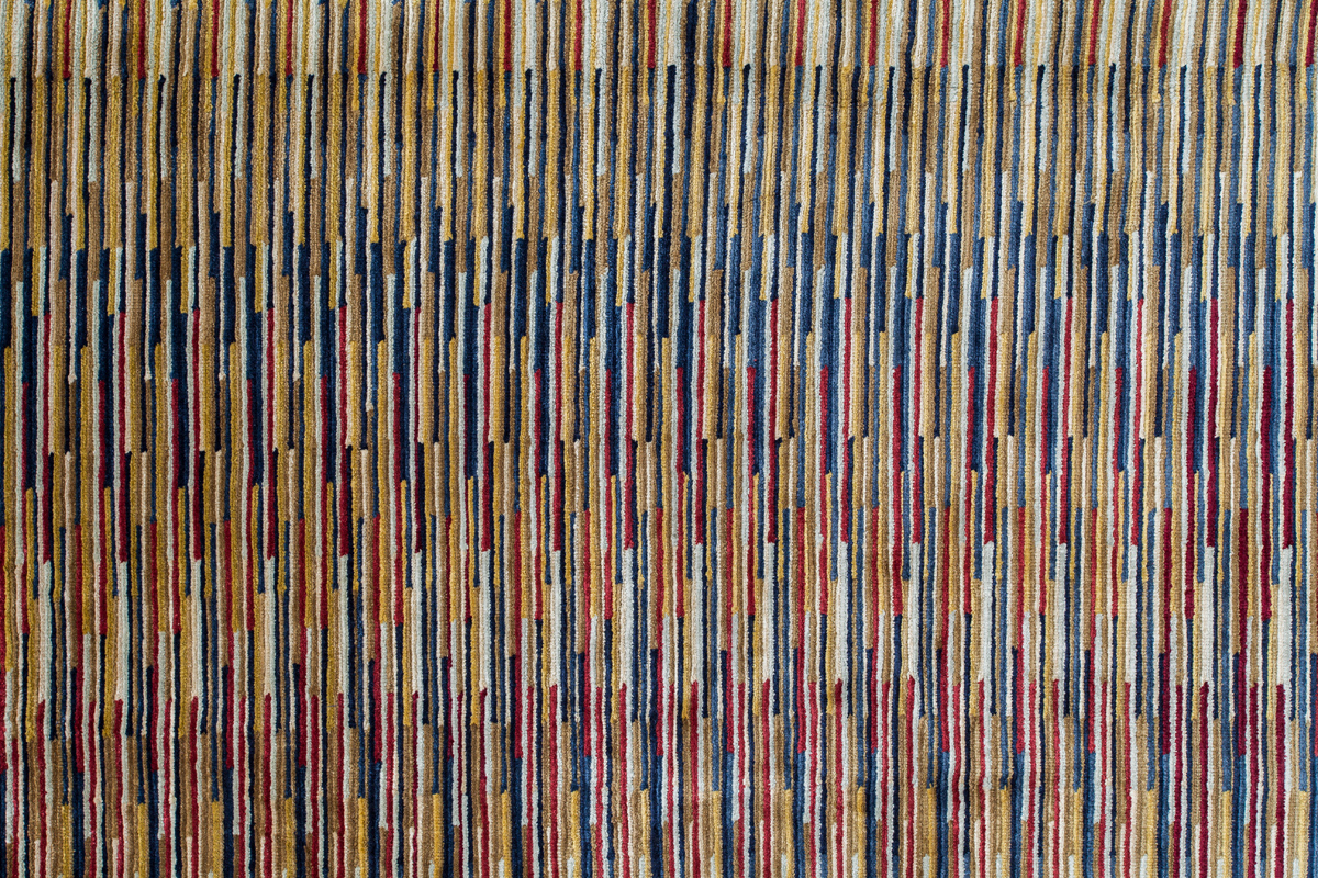 Дизайн ковров напоминает современные полотна художников-абстракционистов и производит столь же яркое и незабываемое впечатление в интерьере. Живописный эффект и необычная фактура зависят от выбора материала: натуральной шерсти, шёлка и от их сочетаний друг с другом. Ковры ткутся вручную в лучших мастерских Индии и Пакистана.