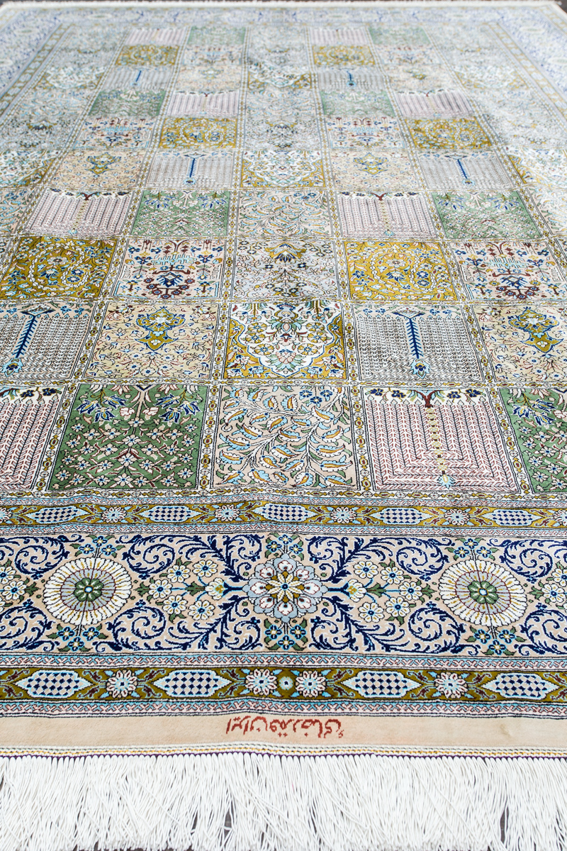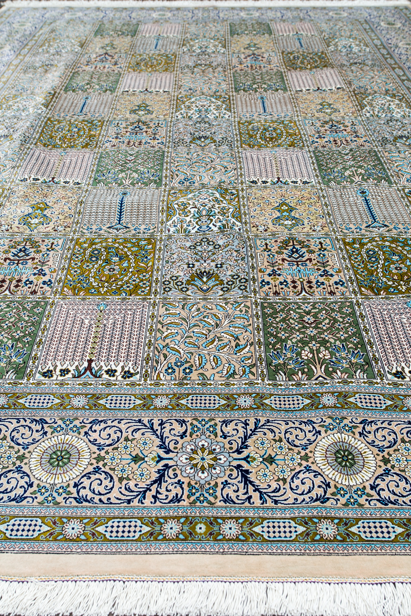 Шёлковая нить гибкая и прочная, поэтому ковры из этого материала считаются самыми износостойкими, а по количеству цветов в одном узоре ковры из коллекции Кум, пожалуй, остаются непревзойдёнными.
