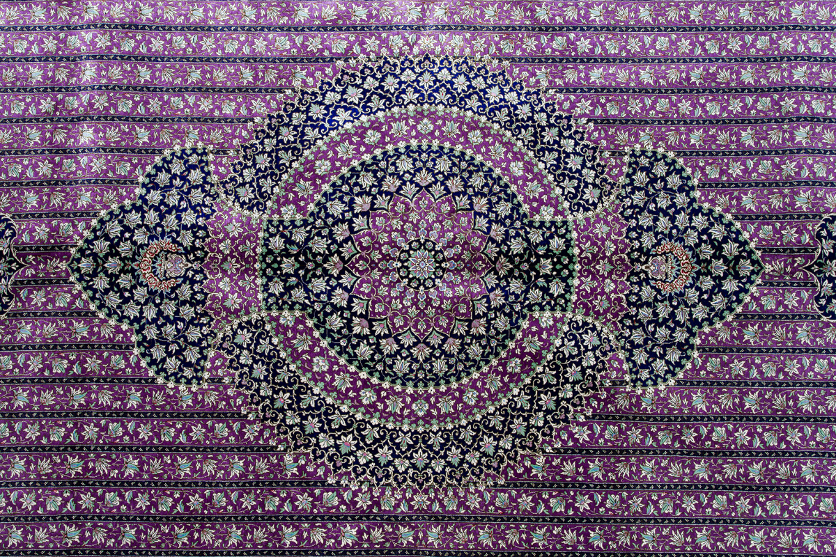 Шёлковая нить гибкая и прочная, поэтому ковры из этого материала считаются самыми износостойкими, а по количеству цветов в одном узоре ковры из коллекции Кум, пожалуй, остаются непревзойдёнными.