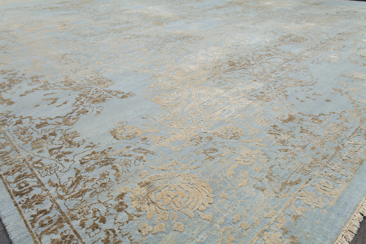 Такой эффект достигается за счет специальной техники плетения, а также обработки, которой подвергают ковры, чтобы они выглядели как антикварные — то есть дорого, элегантно и модно.