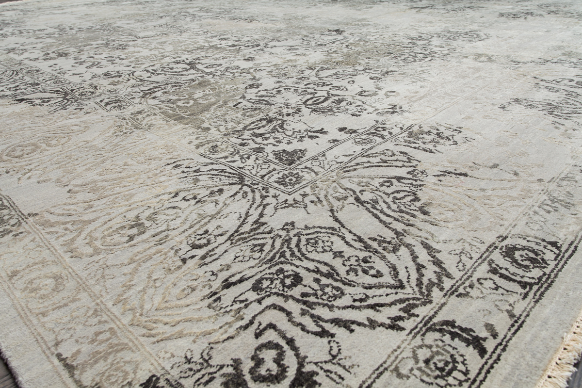 Такой эффект достигается за счет специальной техники плетения, а также обработки, которой подвергают ковры, чтобы они выглядели как антикварные — то есть дорого, элегантно и модно.