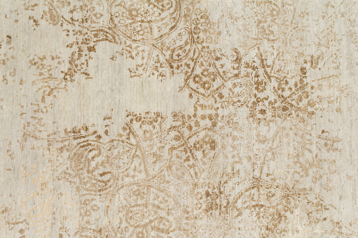Время и природа — два главных стержня. Впечатление такое, что краски словно стёрлись, а если они и сохраняют яркость, то рисунок сохранился не весь, какие‑то фрагменты утрачены — такова типология этого столь актуального сегодня ковра ручной работы из коллекции illusion.