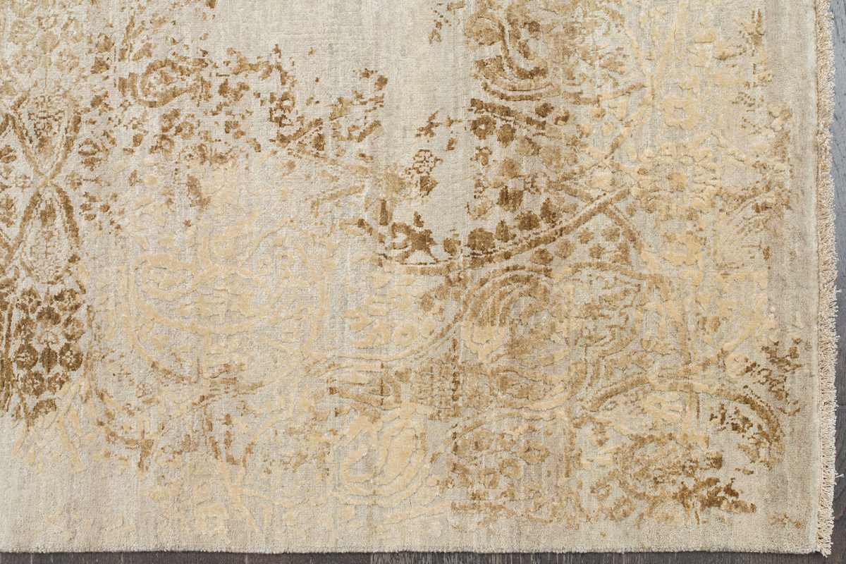 Время и природа — два главных стержня. Впечатление такое, что краски словно стёрлись, а если они и сохраняют яркость, то рисунок сохранился не весь, какие‑то фрагменты утрачены — такова типология этого столь актуального сегодня ковра ручной работы из коллекции illusion.
