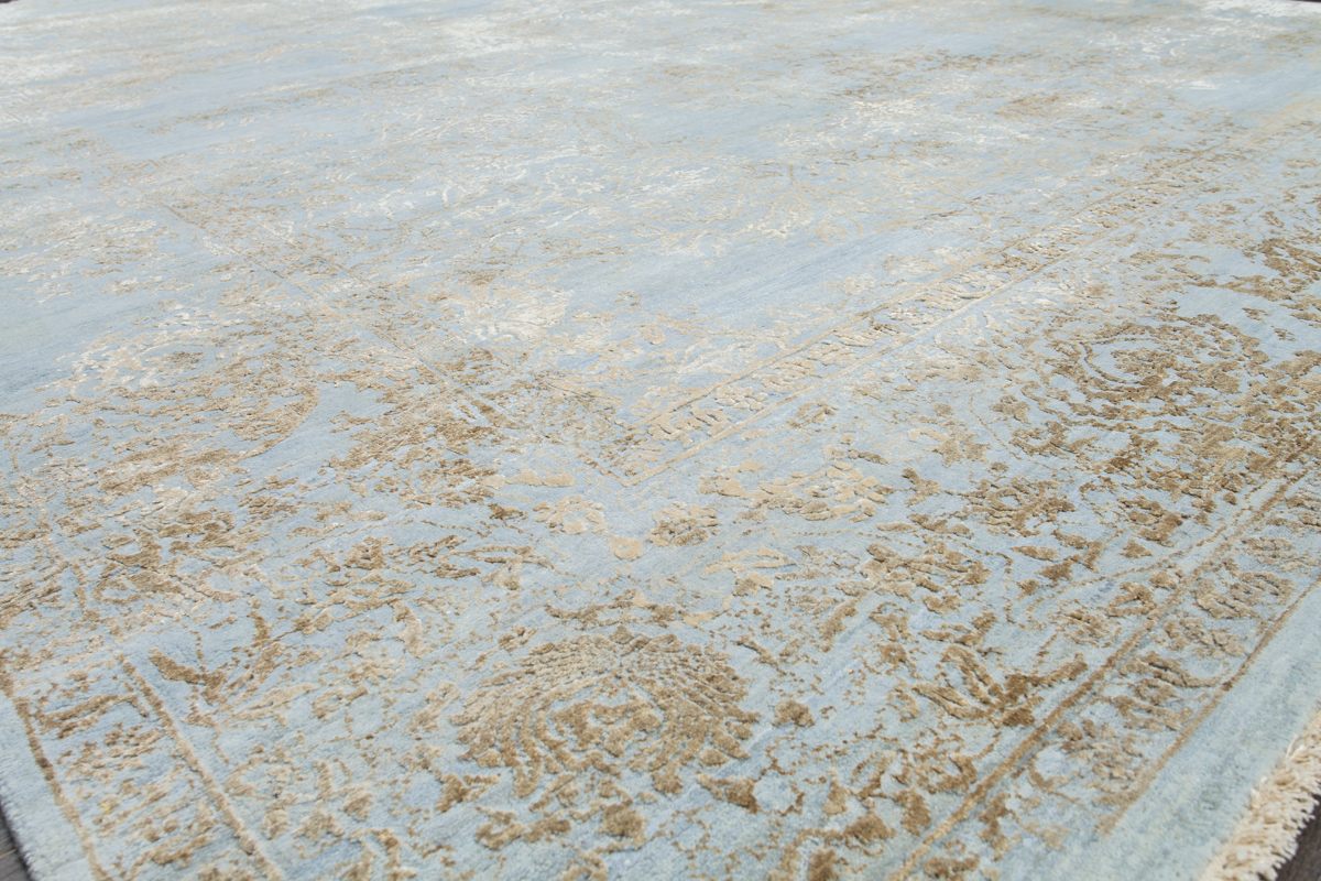 Такой эффект достигается за счет специальной техники плетения, а также обработки, которой подвергают ковры, чтобы они выглядели как антикварные — то есть дорого, элегантно и модно.