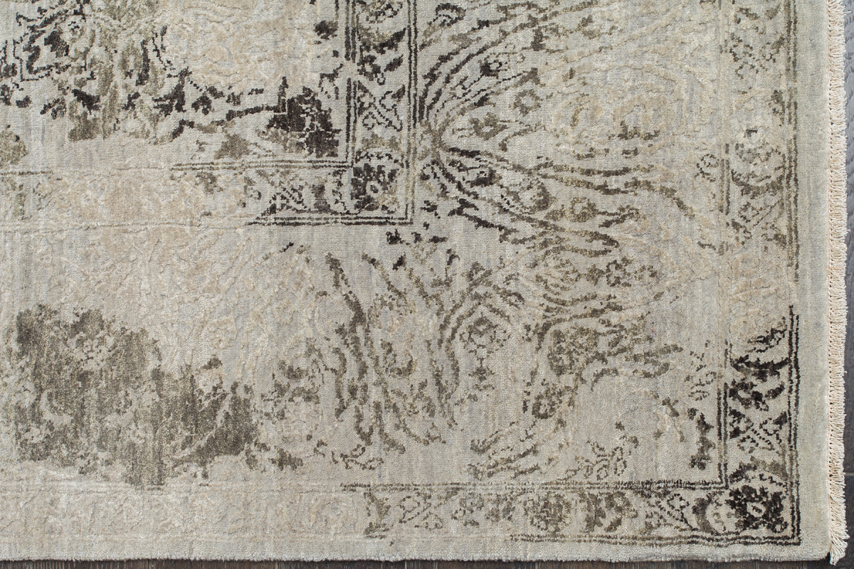 Время и природа — два главных стержня. Впечатление такое, что краски словно стёрлись, а если они и сохраняют яркость, то рисунок сохранился не весь, какие‑то фрагменты утрачены — такова типология этого столь актуального сегодня ковра ручной работы из коллекции illusion.