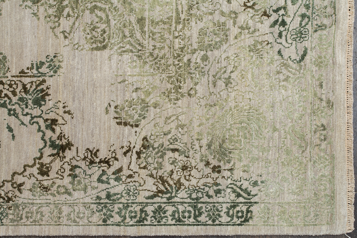 Время и природа — два главных стержня. Впечатление такое, что краски словно стёрлись, а если они и сохраняют яркость, то рисунок сохранился не весь, какие‑то фрагменты утрачены — такова типология этого столь актуального сегодня ковра ручной работы из коллекции illusion.