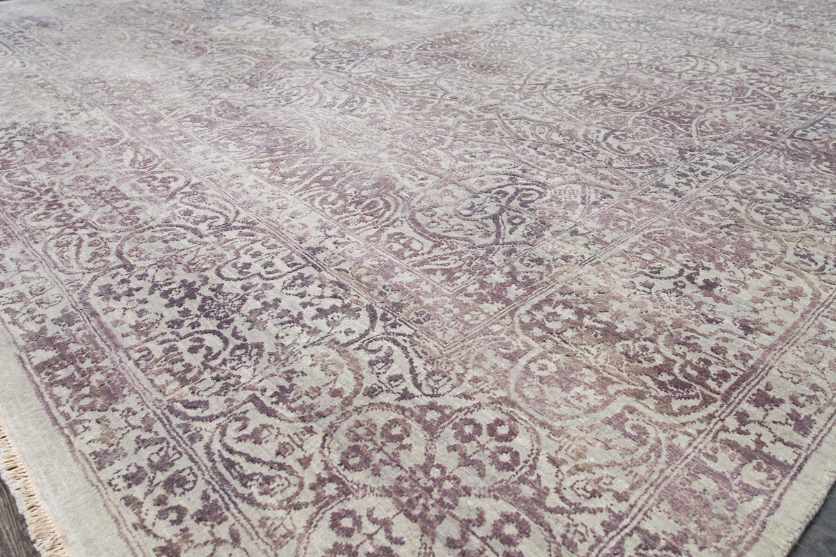 Такой эффект достигается за счет специальной техники плетения, а также обработки, которой подвергают ковры, чтобы они выглядели как антикварные — то есть дорого, элегантно и модно.