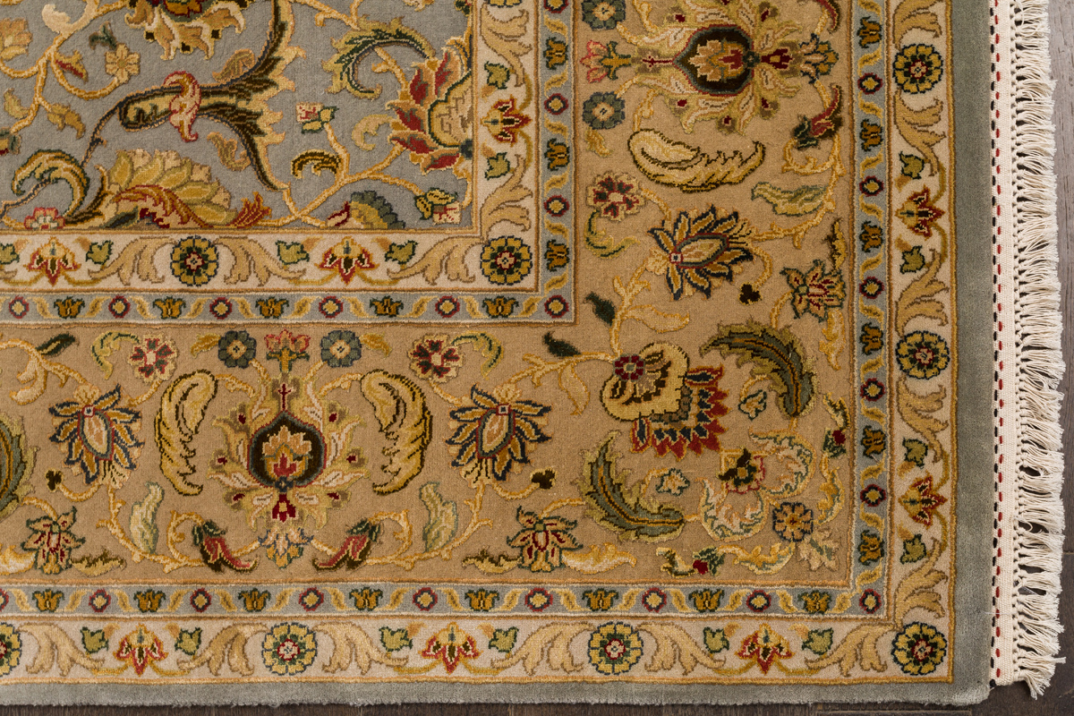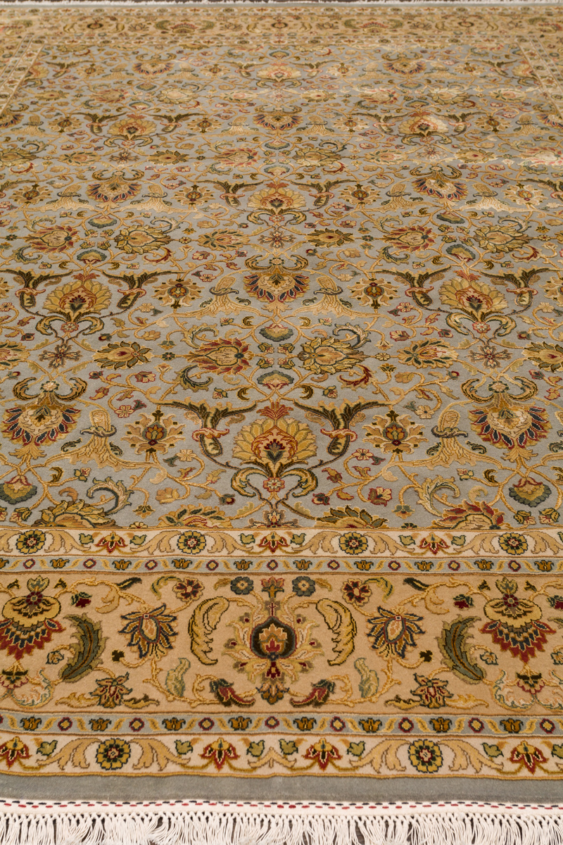 Более пяти веков назад в городе Агра зародилась знаменитая индийская школа ковроткачества, прославившаяся не меньше, чем расположенный здесь же Тадж-Махал. Мощное персидское влияние, помноженное на местный колорит, привело к появлению оригинальных орнаментов с богатыми растительными узорами — причудливым цветам, ветвям и листьям, разбросанным по всему полю ковра.