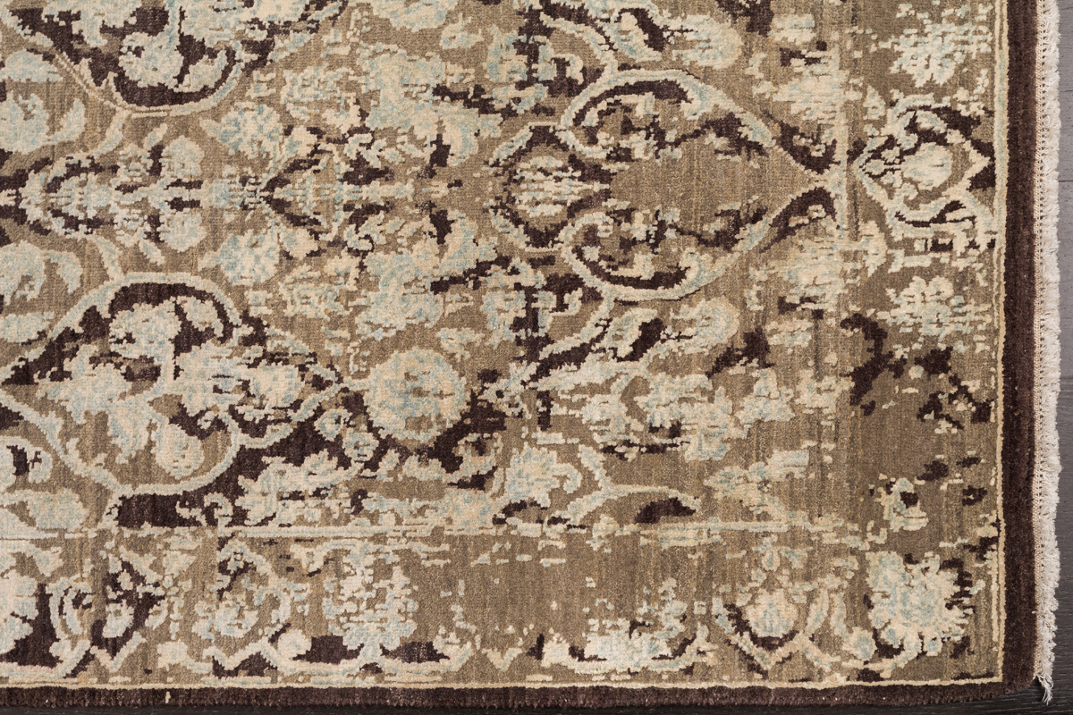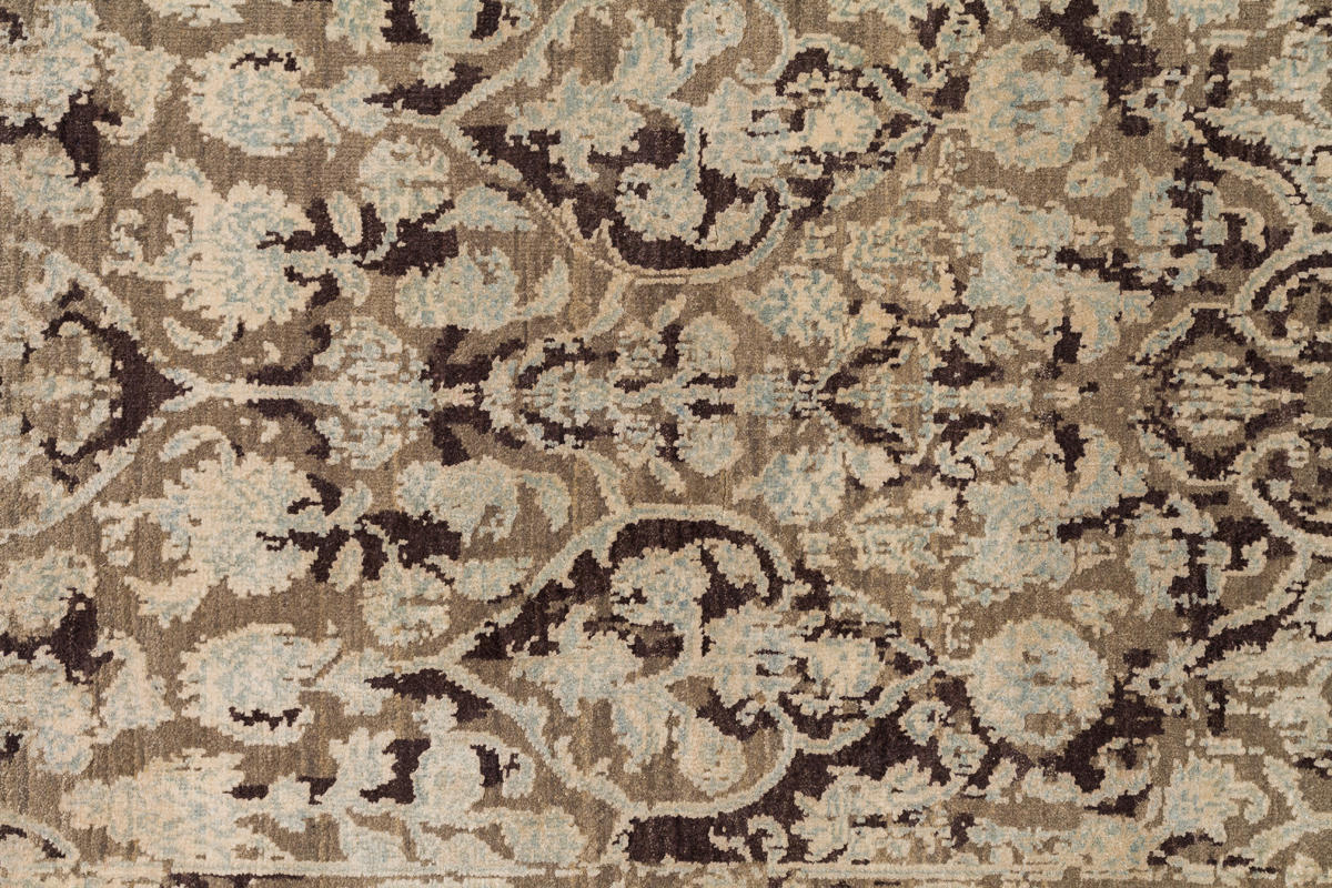 Время и природа — два главных стержня. Впечатление такое, что краски словно стёрлись, а если они и сохраняют яркость, то рисунок сохранился не весь, какие‑то фрагменты утрачены — такова типология этого столь актуального сегодня ковра ручной работы из коллекции Pearl.