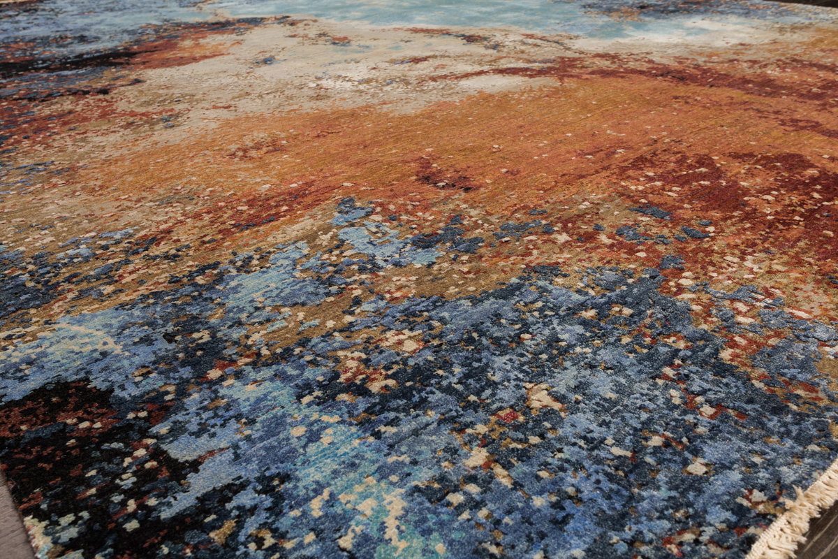 Дизайн ковров напоминает современные полотна художников-абстракционистов и производит столь же яркое и незабываемое впечатление в интерьере. Живописный эффект и необычная фактура зависят от выбора материала: натуральной шерсти, шёлка и от их сочетаний друг с другом. Ковры ткутся вручную в лучших мастерских Индии и Пакистана.