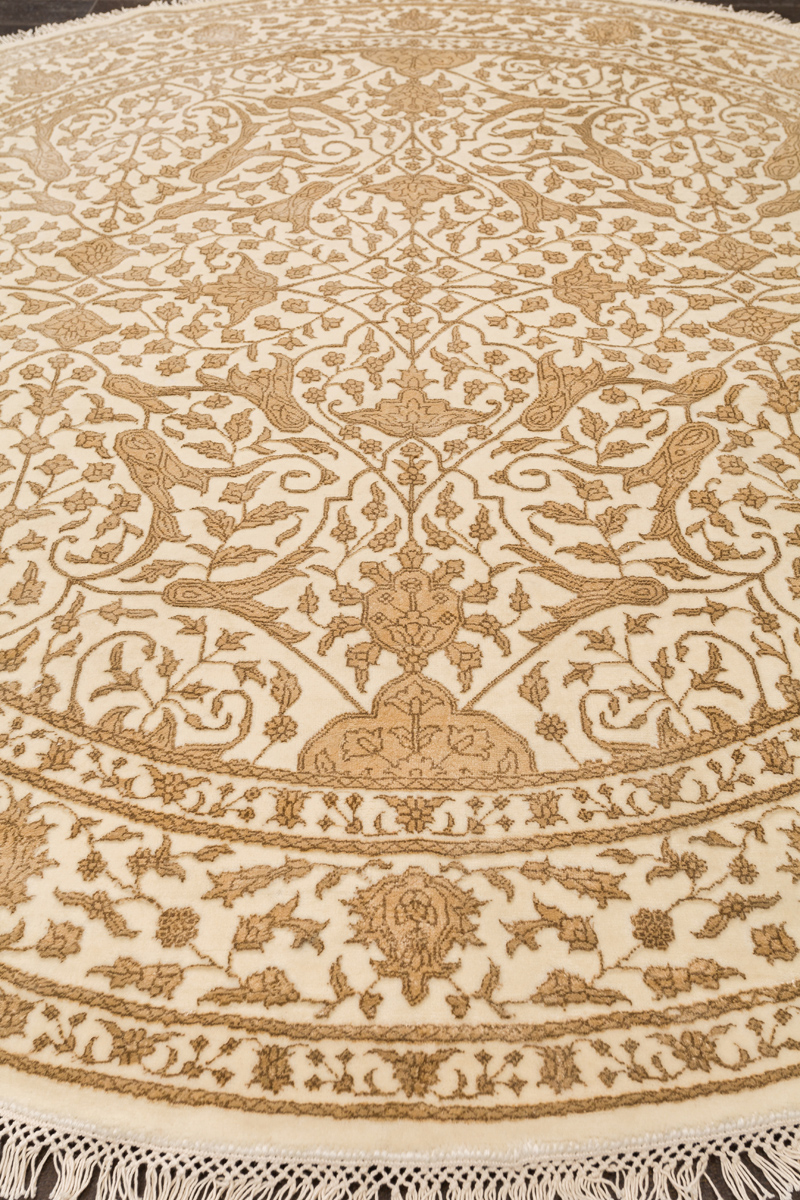Каждый ковер в этой коллекции соткан вручную из шерсти и арт шёлка опытными индийскими мастерами.