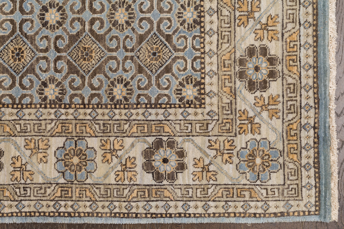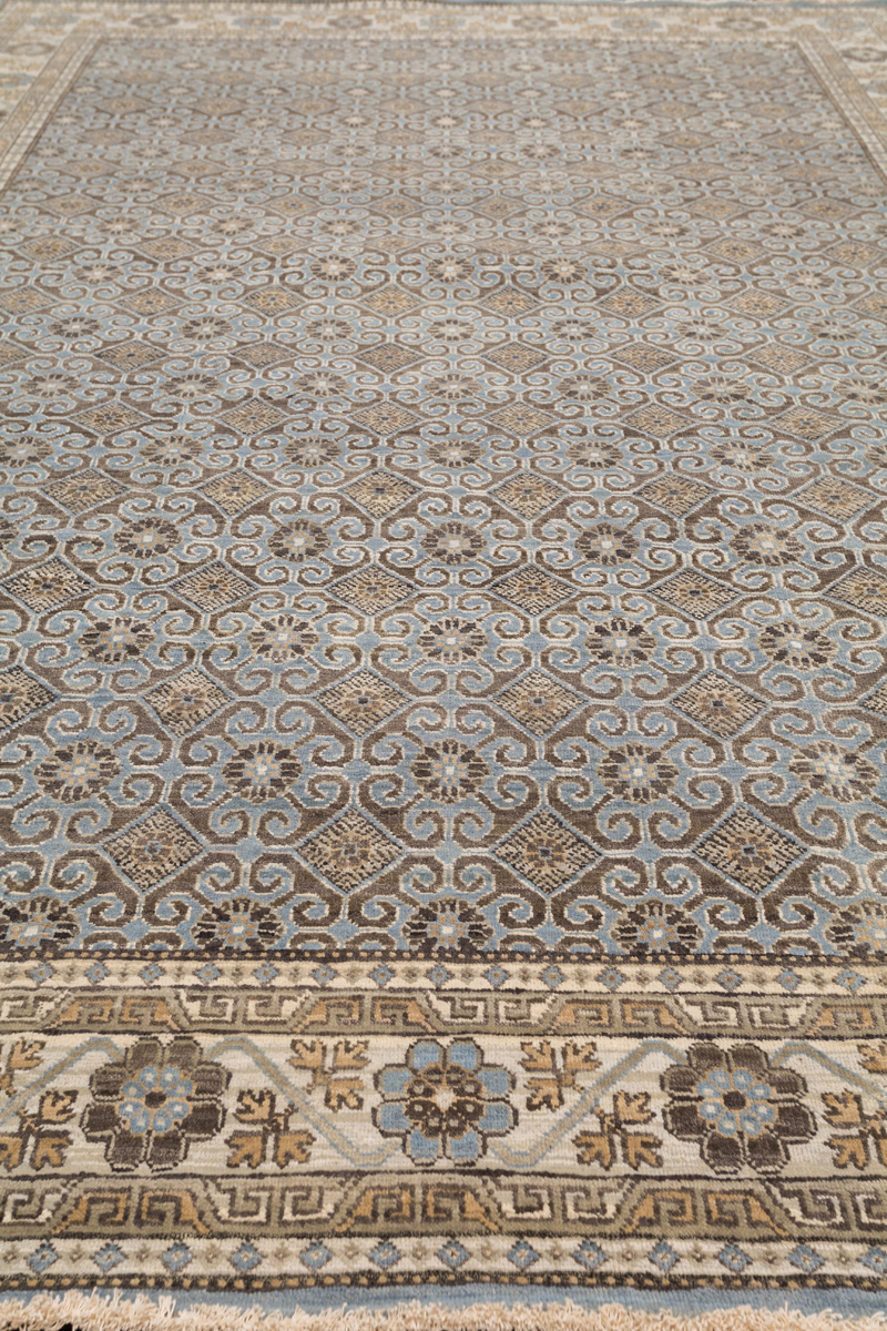 Каждый ковер в этой коллекции соткан вручную из шерсти и арт шёлка опытными индийскими мастерами.